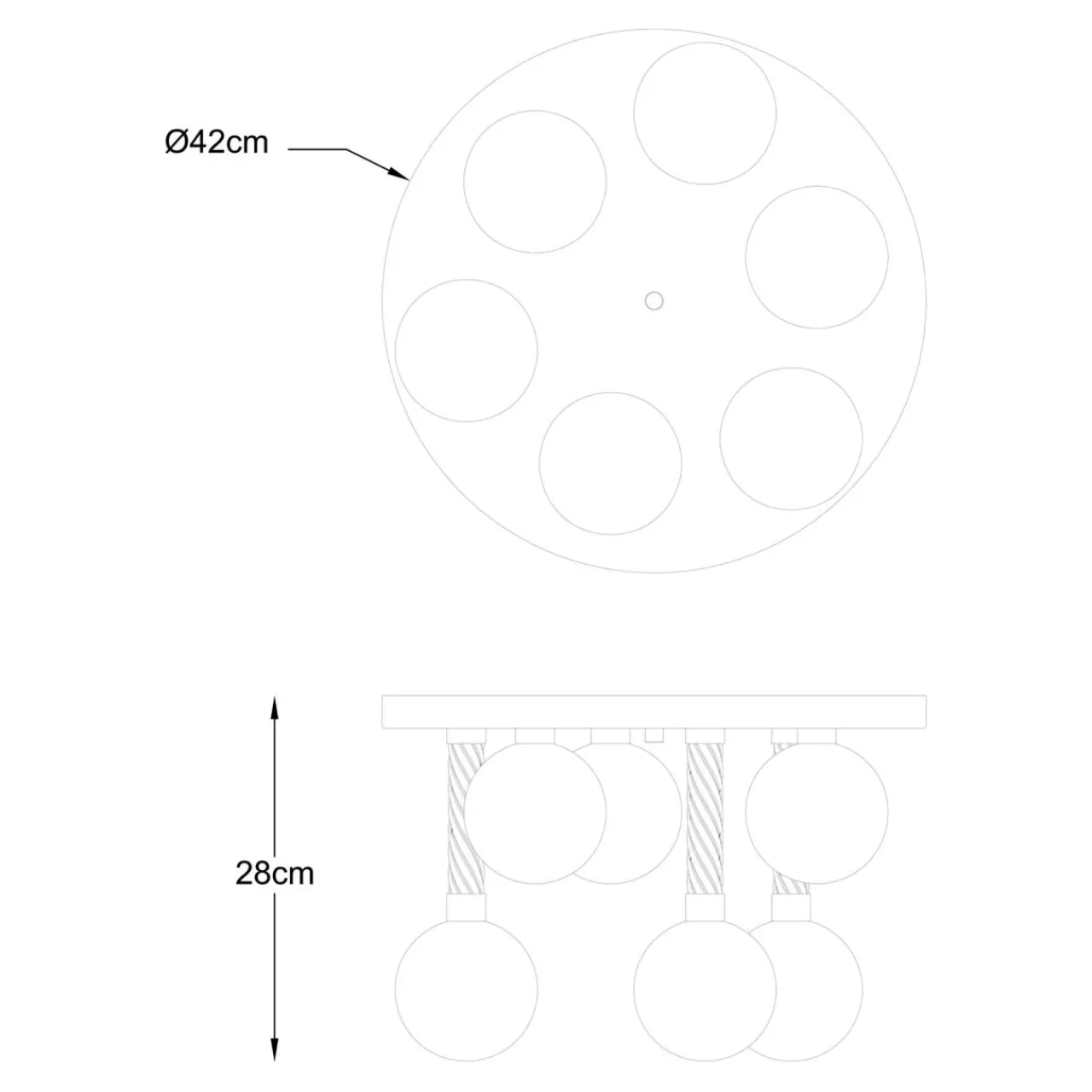 Idealnie sprawdzi się w przestronnym wnętrzu. Posiada 6 źródeł światła i średnicę 42 cm.