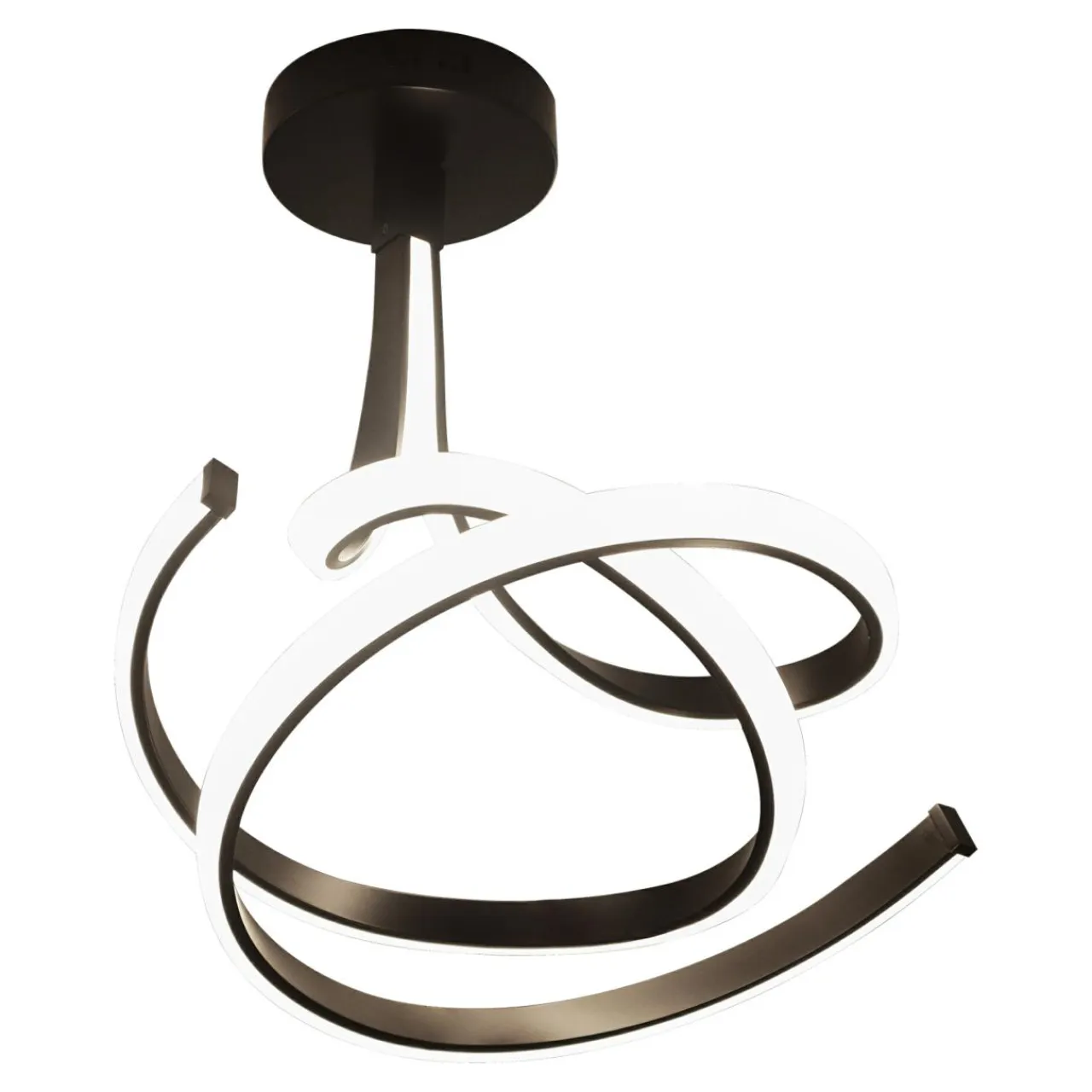 - Podstawowym atutem VISO jest oryginalny kształt. Wijąca się pod sufitem czarna wstęgą została ozdobiona paskiem LED, który podąża za każdym zakrzywieniem elementu dekoracyjnego lampy.