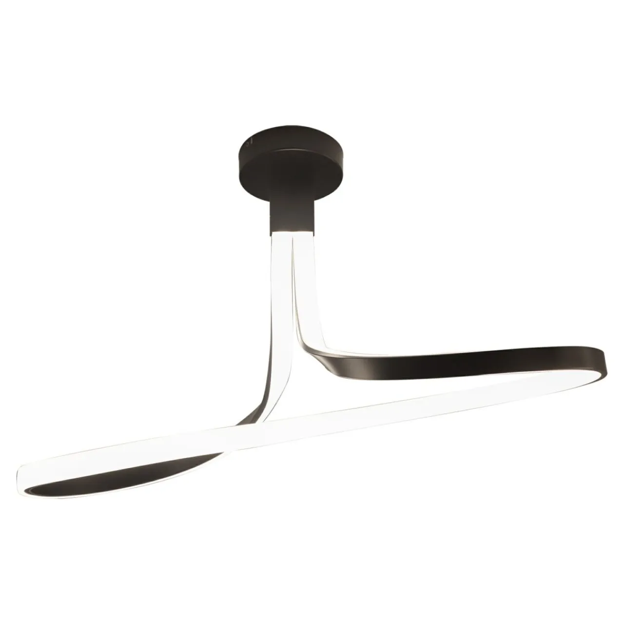 - Podstawowym atutem VISO jest oryginalny kształt. Wijąca się pod sufitem czarna wstęga została ozdobiona paskiem LED, który podąża za każdym zakrzywieniem elementu dekoracyjnego lampy.