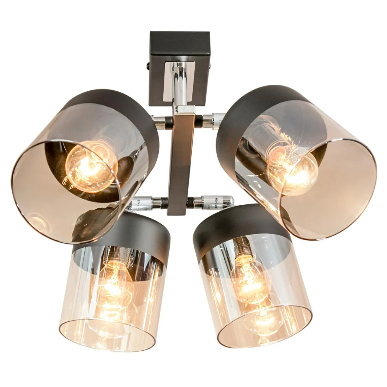 Cztery źródła światła podwieszone na listwie pod sufitem rozjaśniają wnętrze, a dzięki regulowanemu ustawieniu kloszy pozwalają na dobre doświetlenie pomieszczenia. Lampa doskonale sprawdza się w przestronnych pomieszczeniach pokroju jadalni oraz salonu.