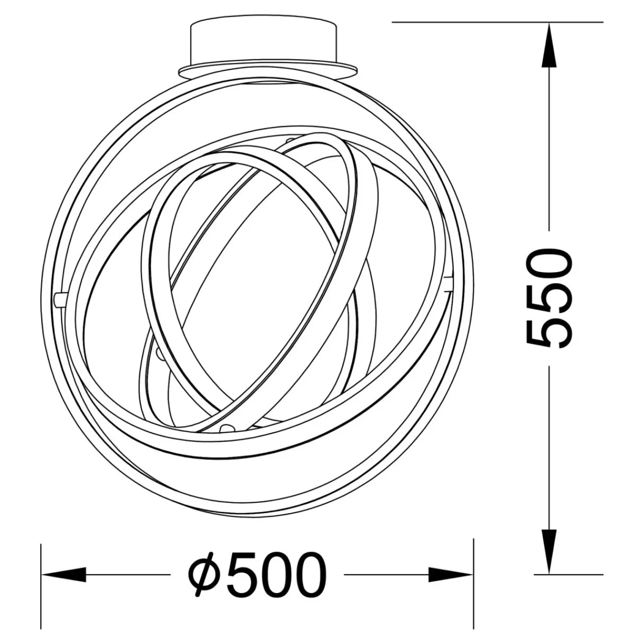 - Kształt ozdobnych elementów lampy tworzą połączone ze sobą 4 okręgi, które sprawiają wrażenie jakby ciągle były w ruchu, niczym orbity planet.