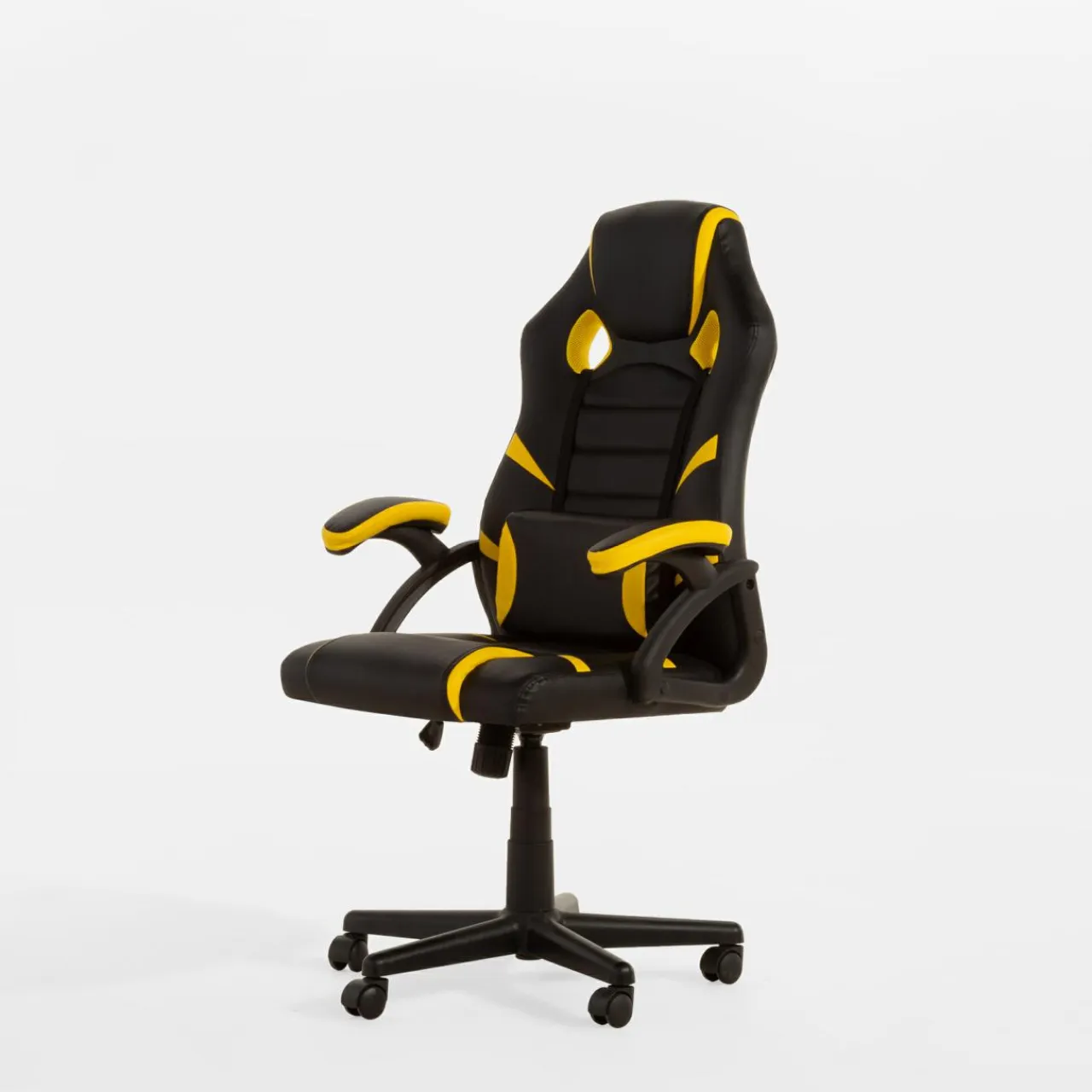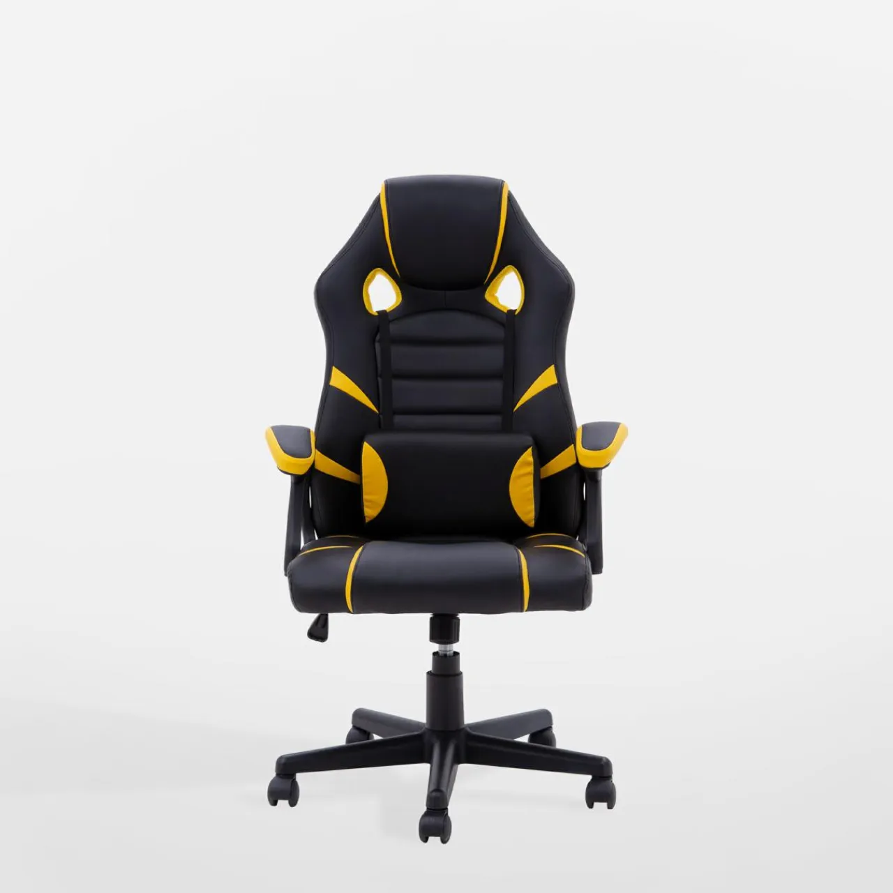 Fotel gamingowy czarno-żółty UPLAY to idealny partner wieczornych rozgrywek, bo możesz dopasować wysokość ułożenia siedziska i poduchy podlędźwiowej.
