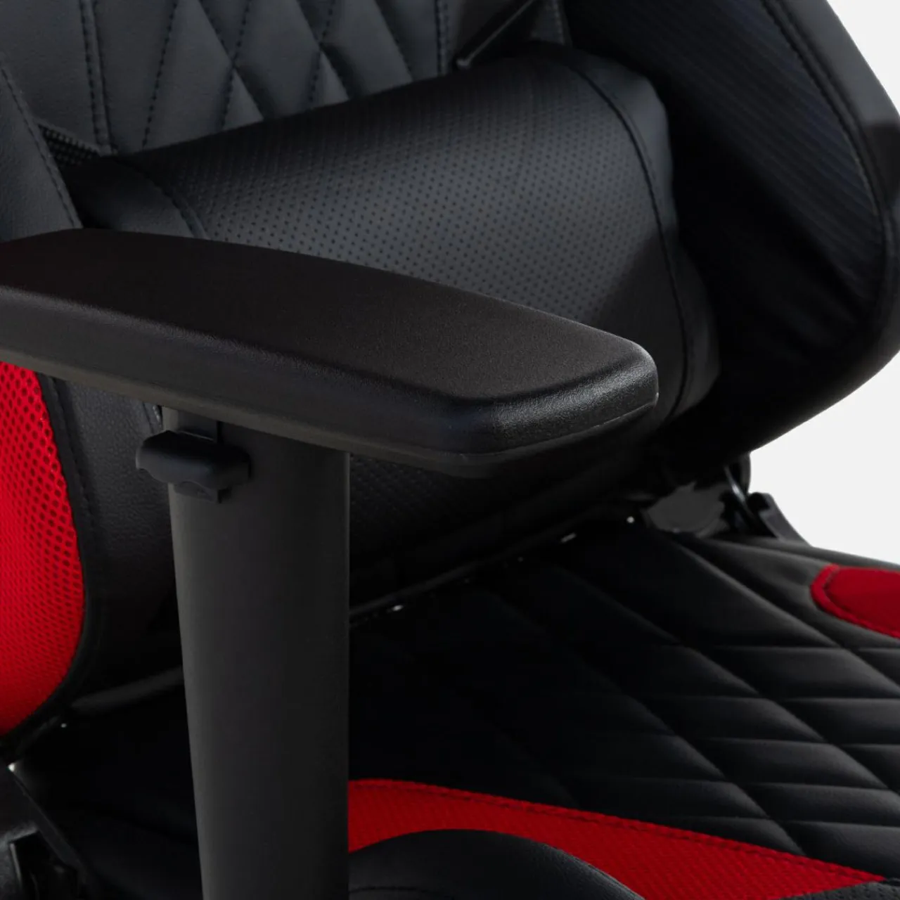 - Obicie z ekoskóry w czarnym kolorze z czerwonymi wstawkami świetnie dopełni aranżację strefy gamingowej.