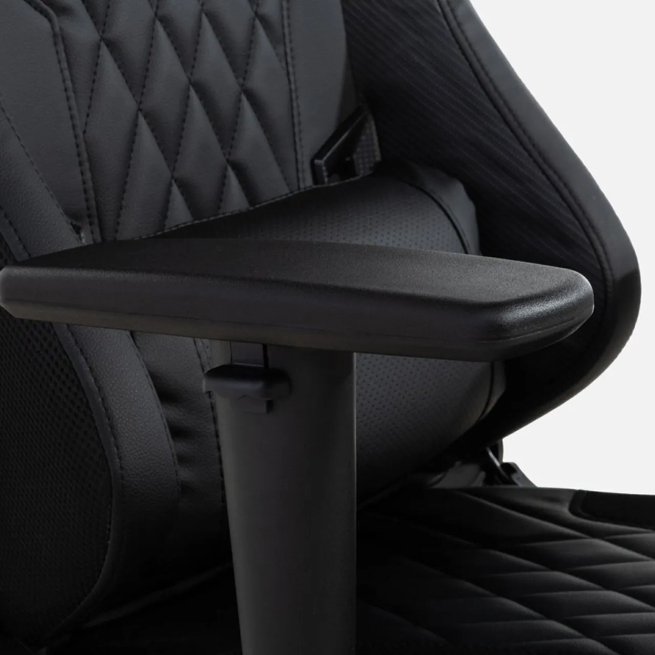 - Obicie z ekoskóry w czarnym kolorze świetnie dopełni aranżację strefy gamingowej.