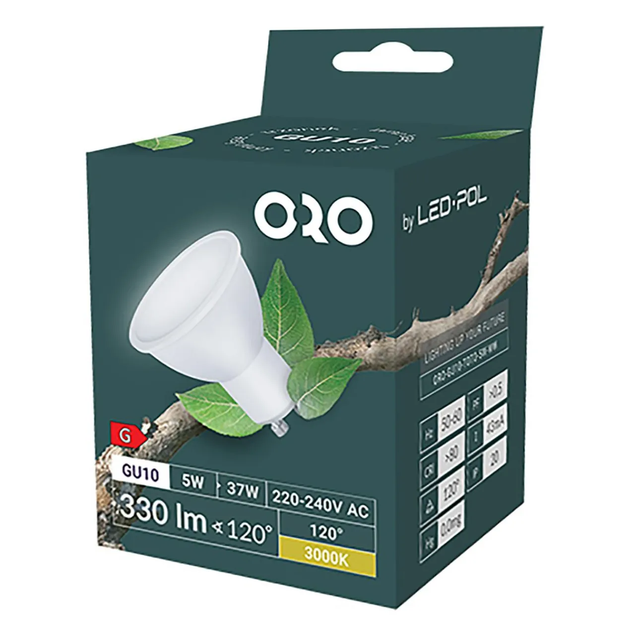 ORO-GU10-TOTO-5W-WW charakteryzuje się także bardzo dużą wytrzymałością oraz długą żywotnością (20000 godzin). Emituje ciepłe światło o temperaturze barwowej 3000K.
