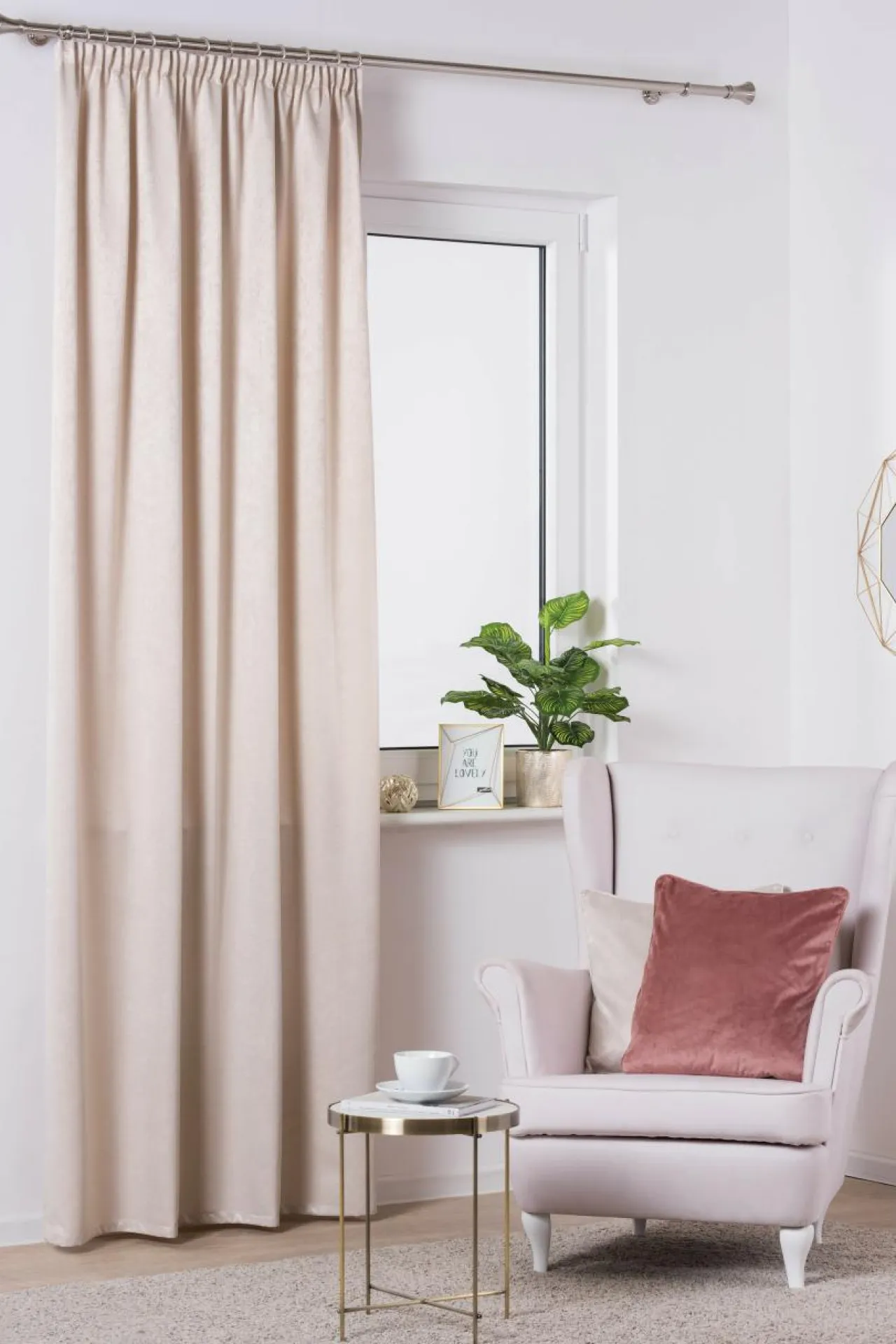 Prosta, jednokolorowa zasłona to doskonałe uzupełnienie aranżacji pomieszczenia w stylu skandynawskim i klasycznym. Możesz ożywić ją wykorzystując dekoracyjny upinacz.