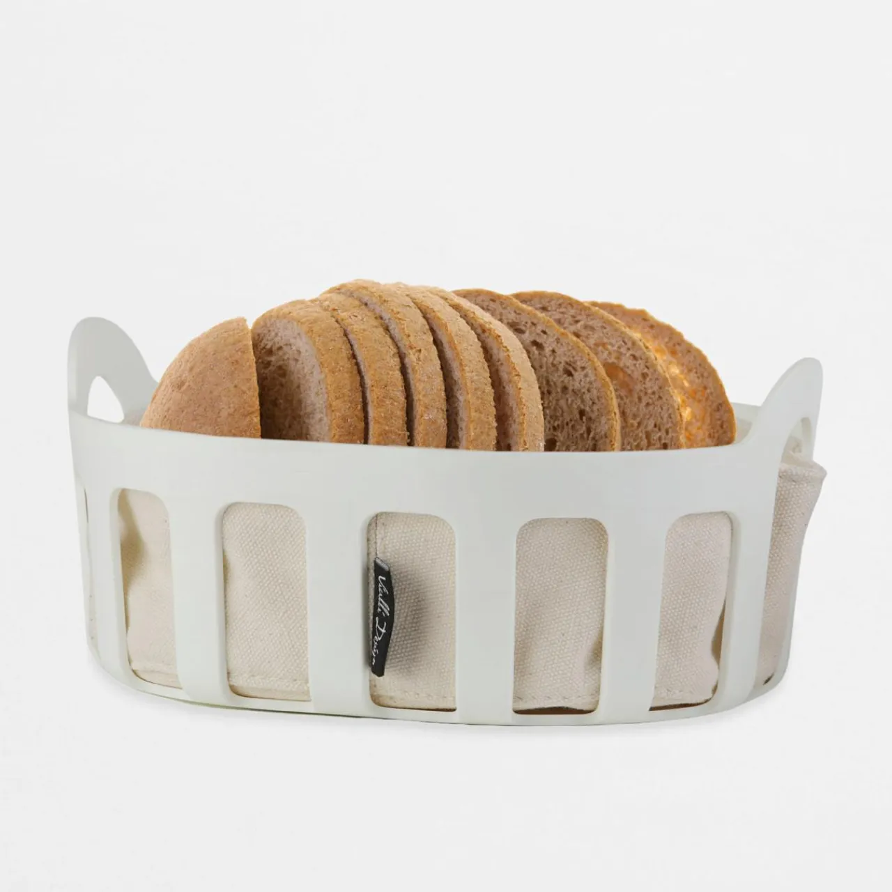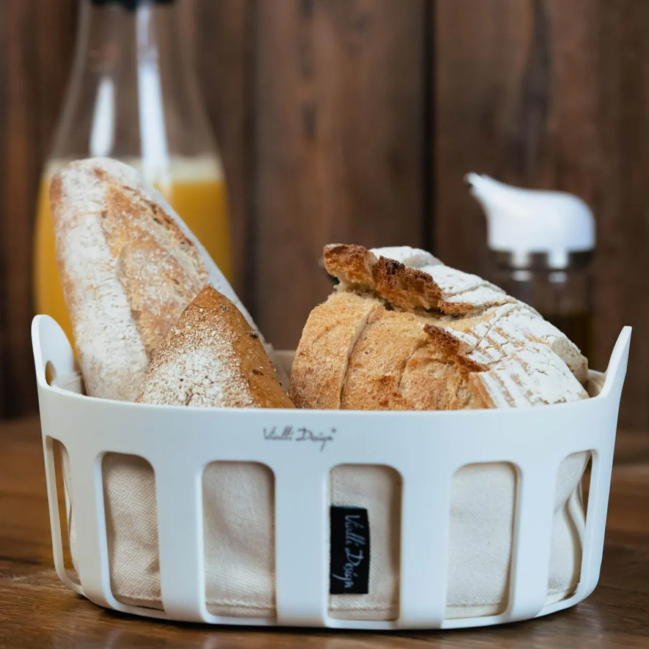 Zastawa Śniadaniowa|Vialli Design Koszyk na pieczywo z bawełnianym wkładem biały LIVIO