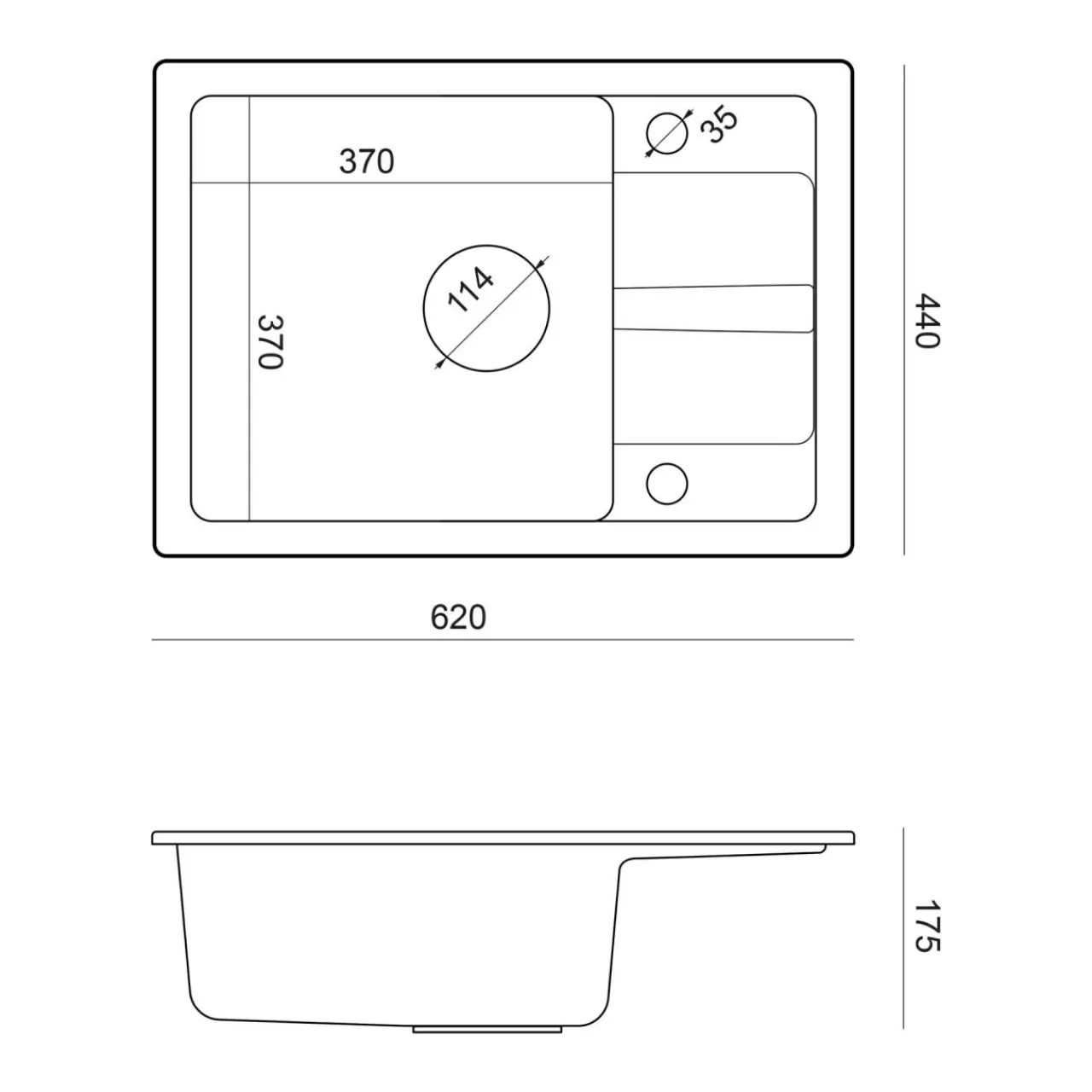 - Wykończony w czarnym kolorze ma 1 komorę i ociekacz.