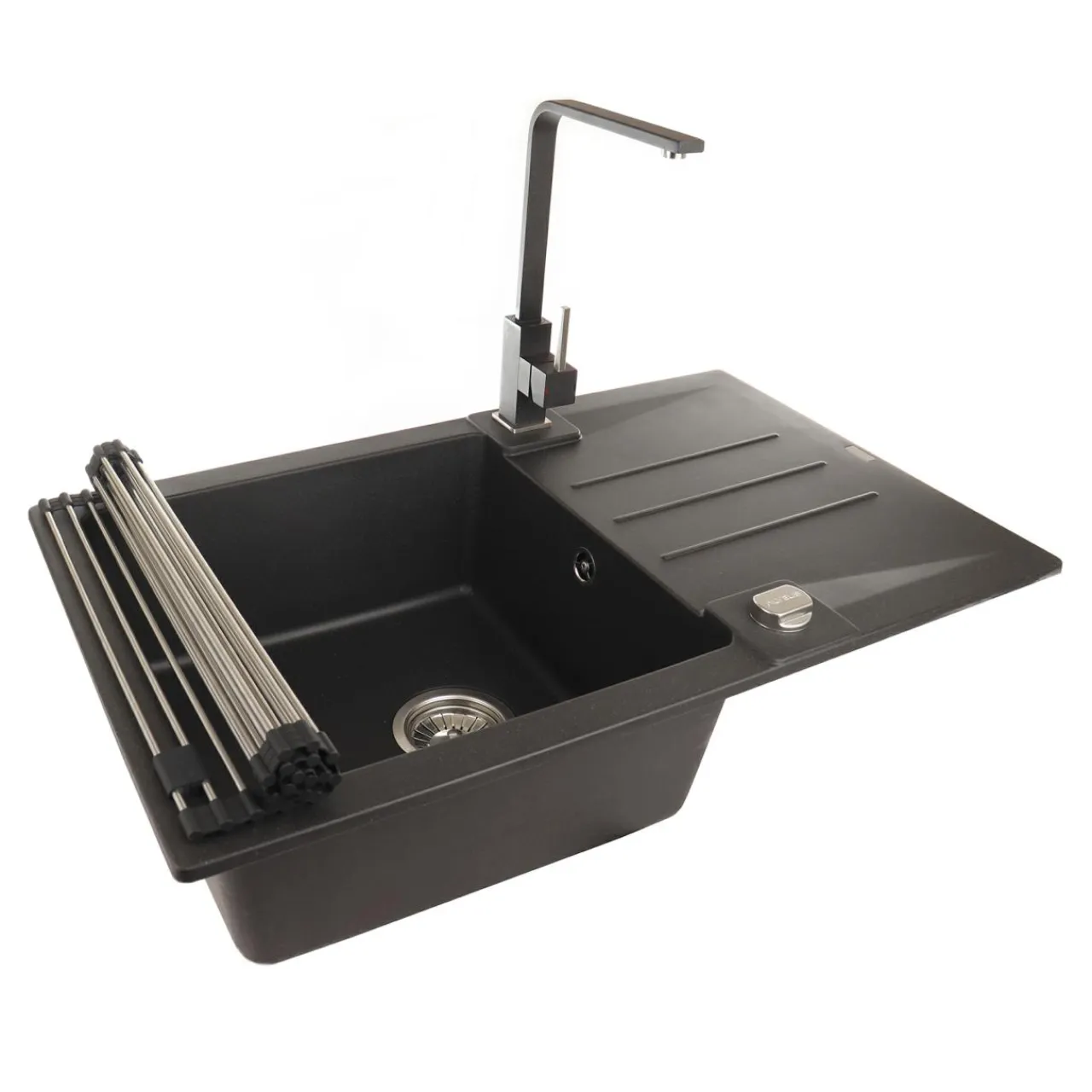 - Wykończony w czarnym kolorze ma 1 komorę i ociekacz.