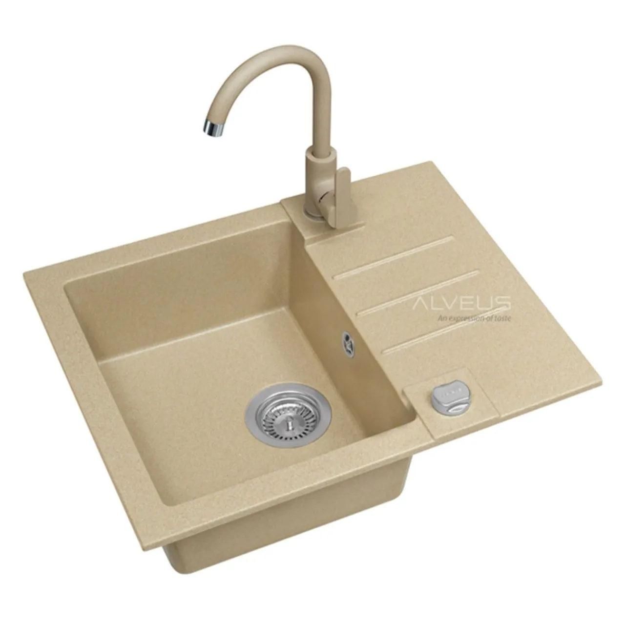Zlewozmywak CANTO w beżowym kolorze oraz specjalnie dobrana do niego bateria NIKITA zostały zaprojektowane w nowoczesnym stylu, który łączy elementy estetyczne z funkcjonalnymi.