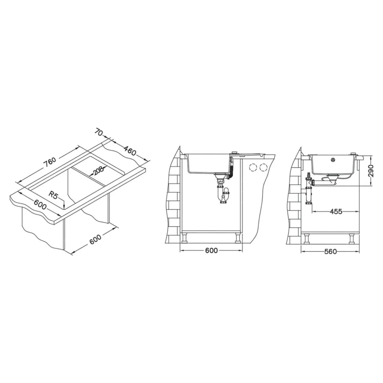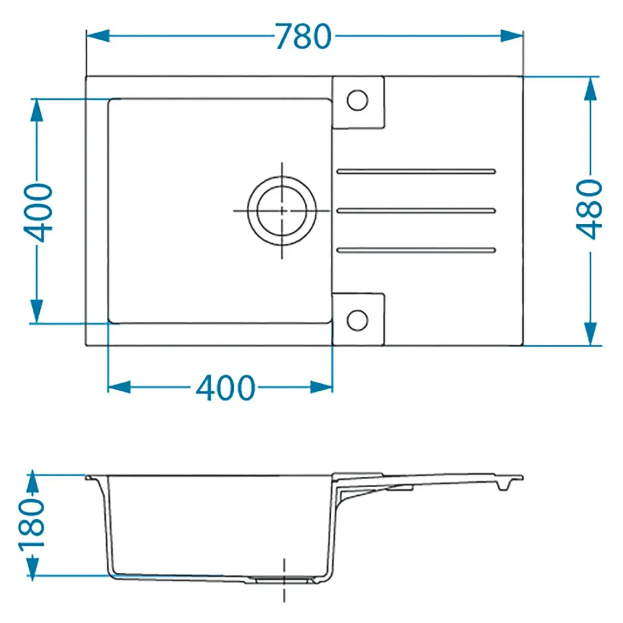 Posiada fabrycznie wykonane otwory ø35 mm na baterię i korek typu POP-UP. Do zlewozmywaka jest również dołączony syfon typu Safe Space. Odpływ – Ø 114.