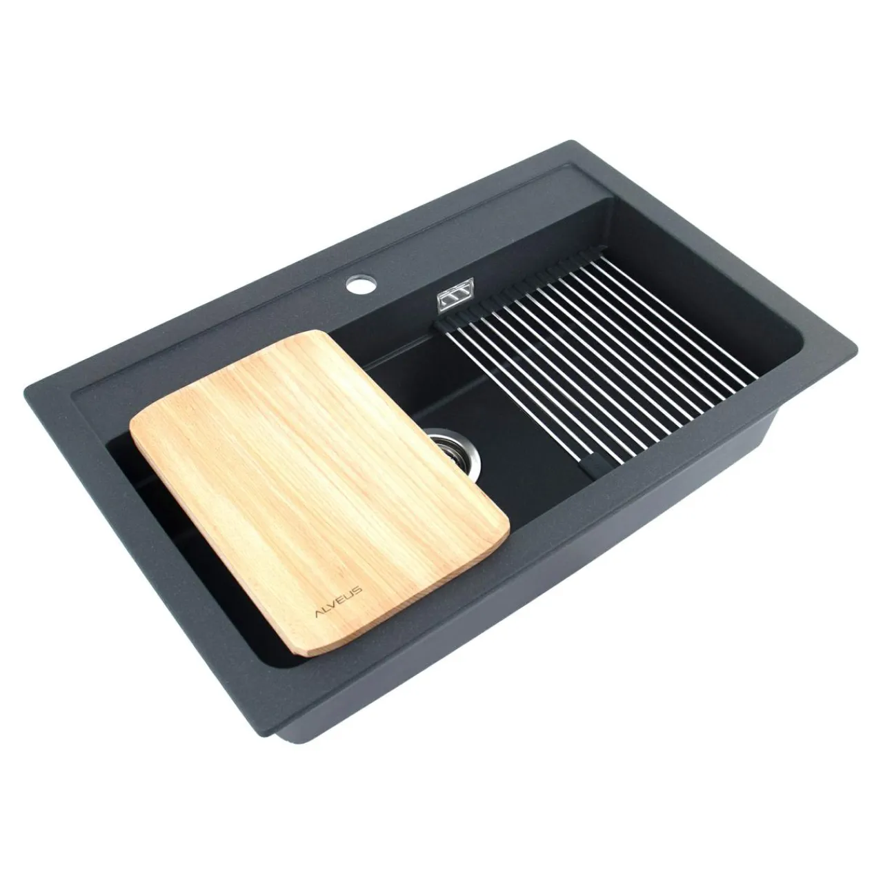 Brzeg zlewozmywaka jest na tyle stabilny, że oprzesz na nim deskę podczas krojenia, a mata umieszczona wewnątrz pozwala na odsączenie mięsa lub warzyw.