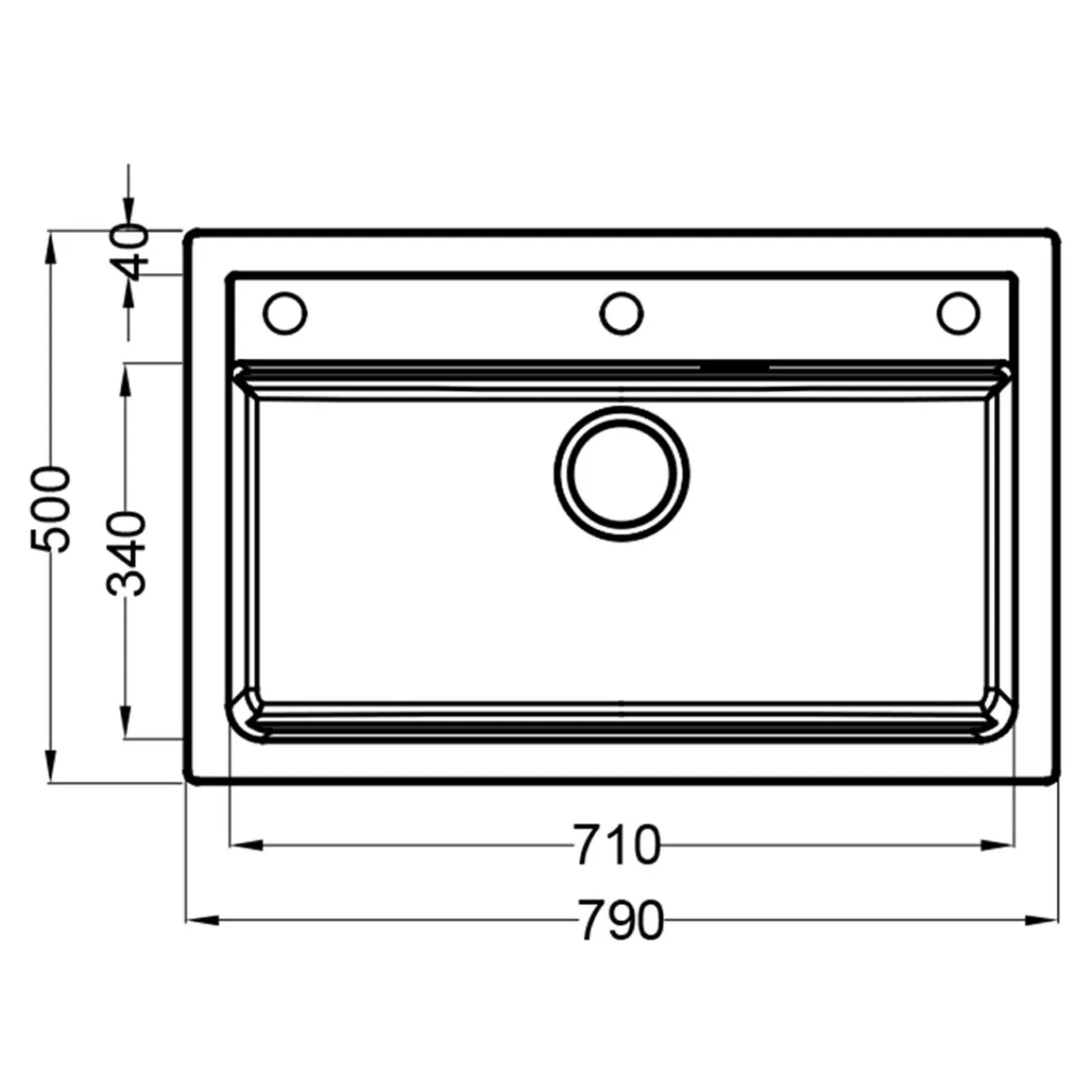 - Został zaprojektowany do szafki o minimalnej szerokości 80 cm, gdy zamontujesz go jako zlew wpuszczony w blat.