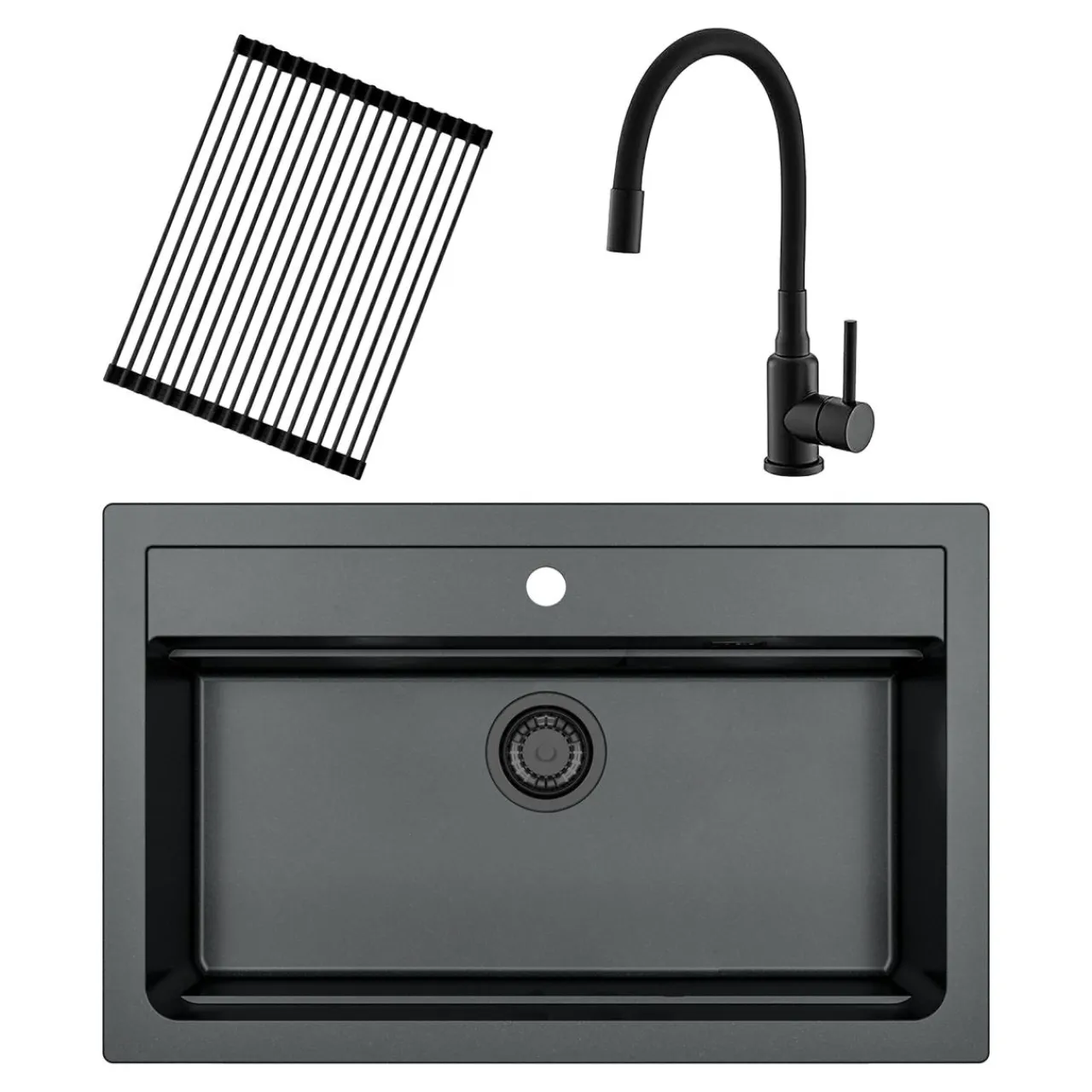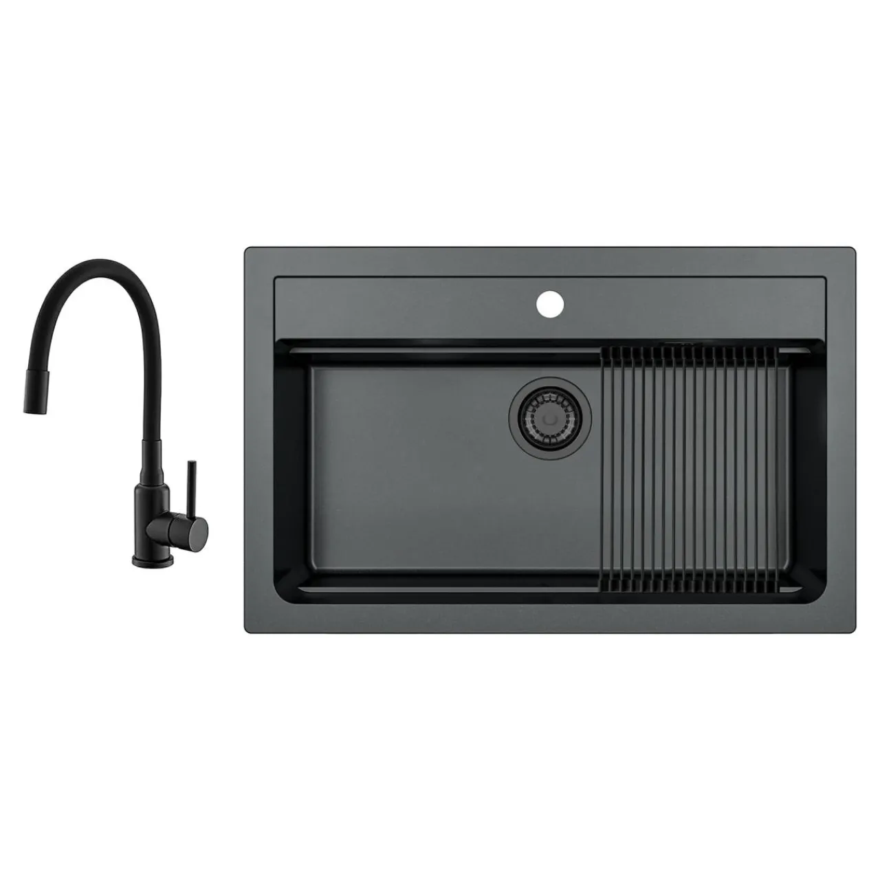 Bateria z czarnym, elastycznym ramieniem jest doskonałym uzupełnieniem dla nowoczesnego zlewozmywaka.