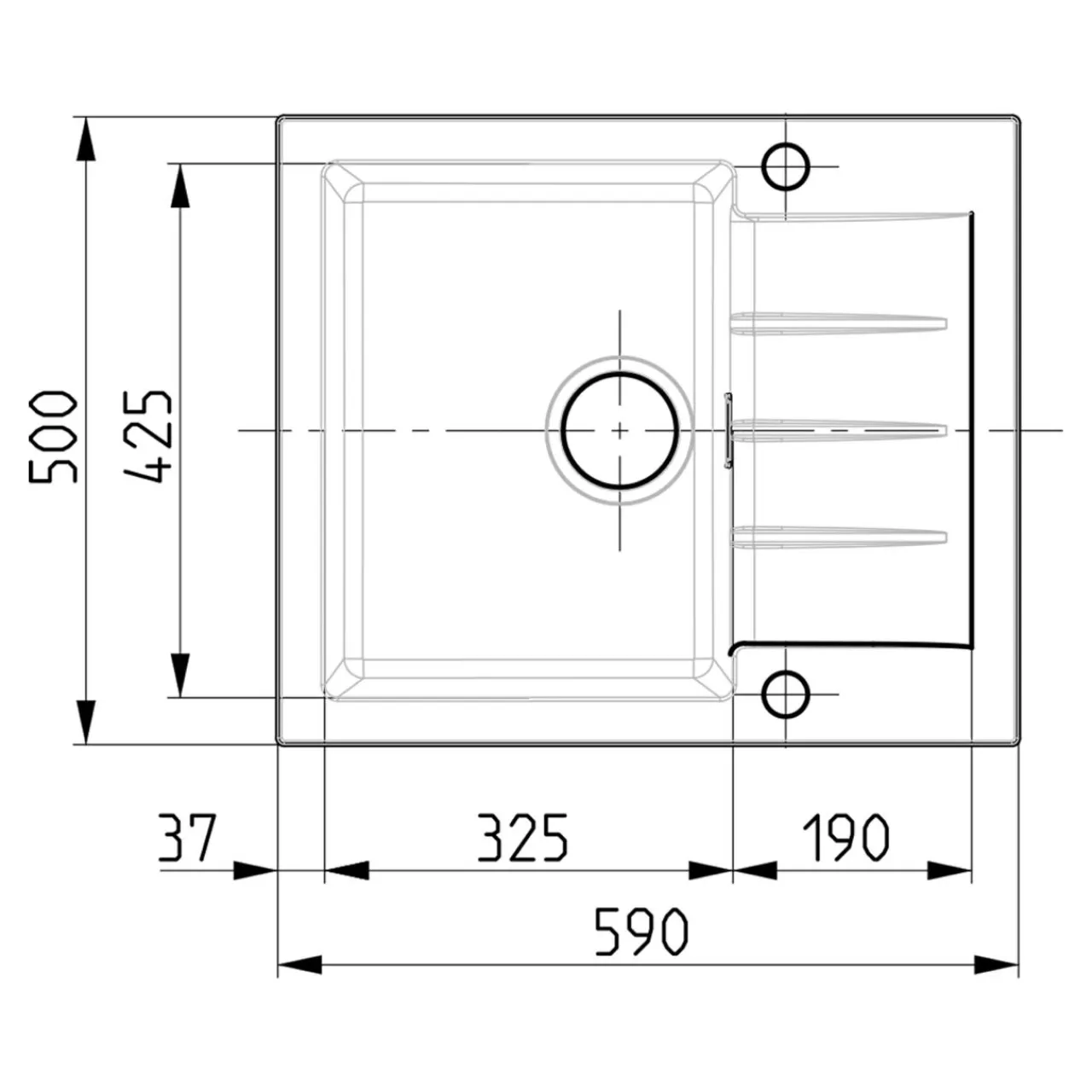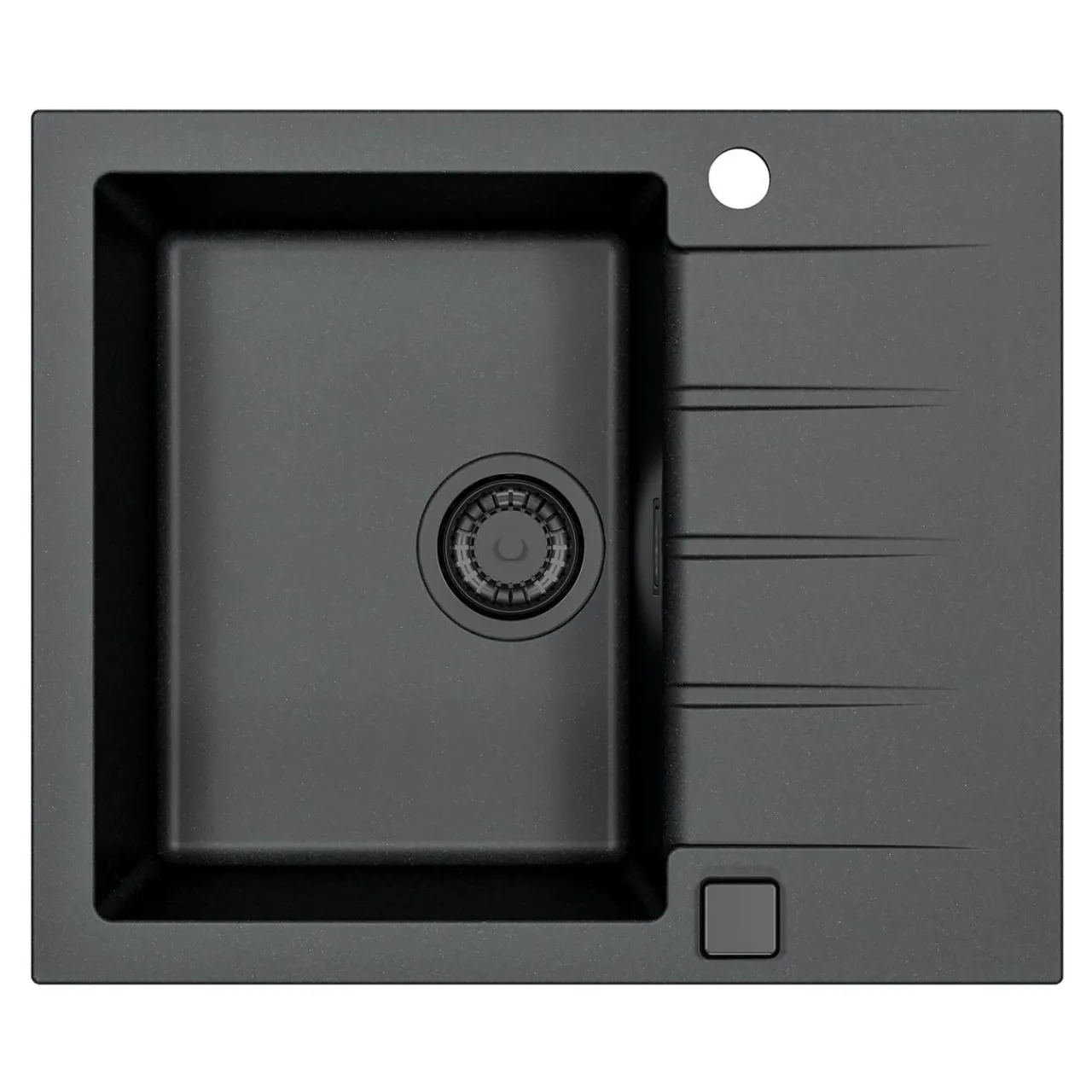 Przeznaczony pod szafkę o minimalnej szerokości 45 cm i wykończony w czarnym kolorze posiada pojedynczą komorę oraz niewielki ociekacz.