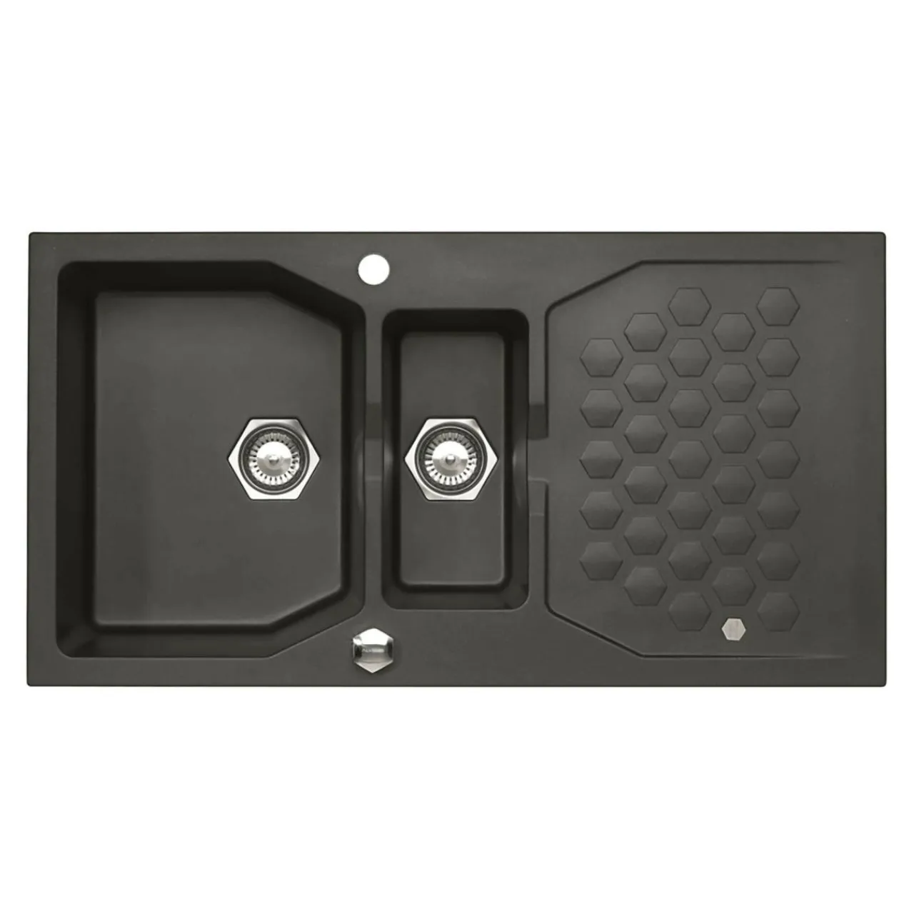 Posiada fabrycznie wykonane otwory ø35 mm na baterię i korek typu POP-UP. Do zlewozmywaka jest również dołączony syfon. Odpływ – Ø 114.