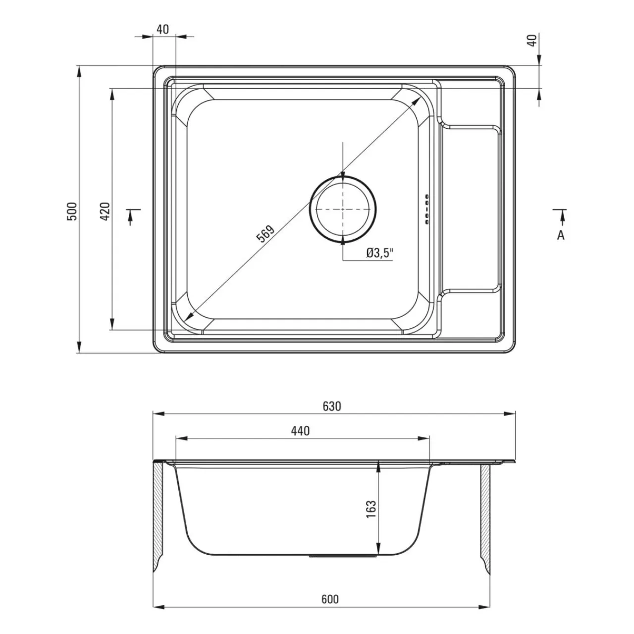 - zlewozmywak SOUL 64×50 cm