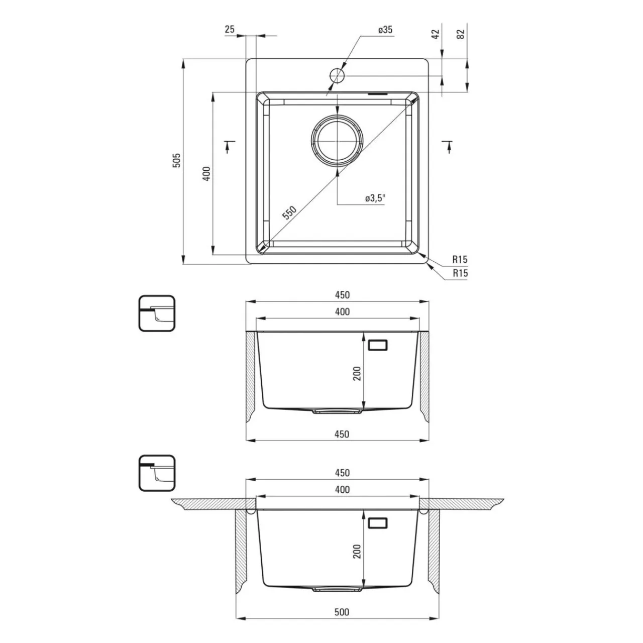- Zlewozmywak jest odporny na temperatury do 250 stopni Celsjusza.