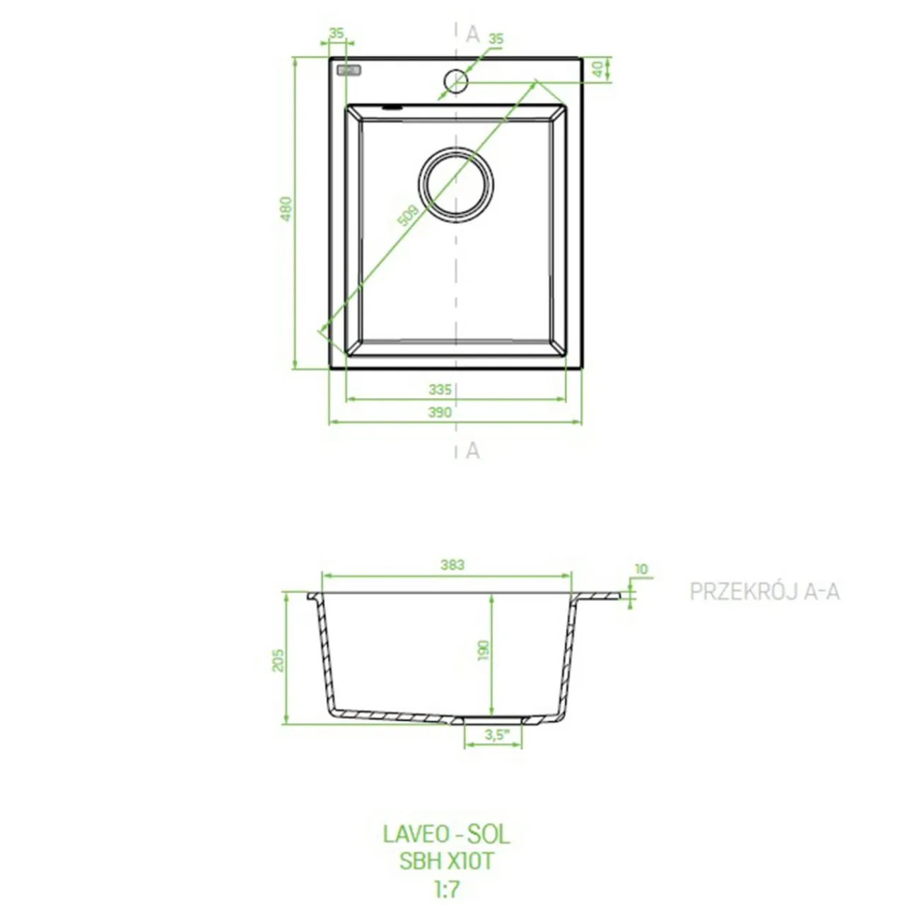 - Średnica odpływu: 3,5 cala