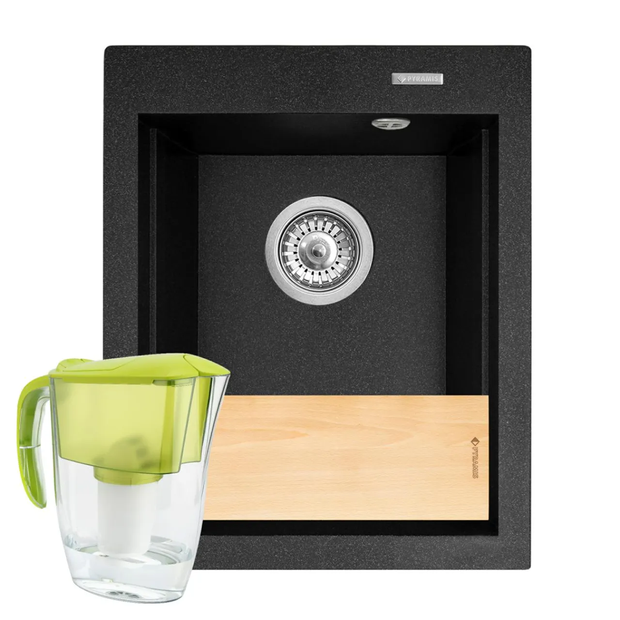 Rant na brzegu zlewu sprawia, że możesz oprzeć na nim deskę podczas krojenia bez ryzyka zachlapania sokiem kuchennego blatu. Dzbanek z filtrem pozwoli Ci pić wodę prosto z kranu.