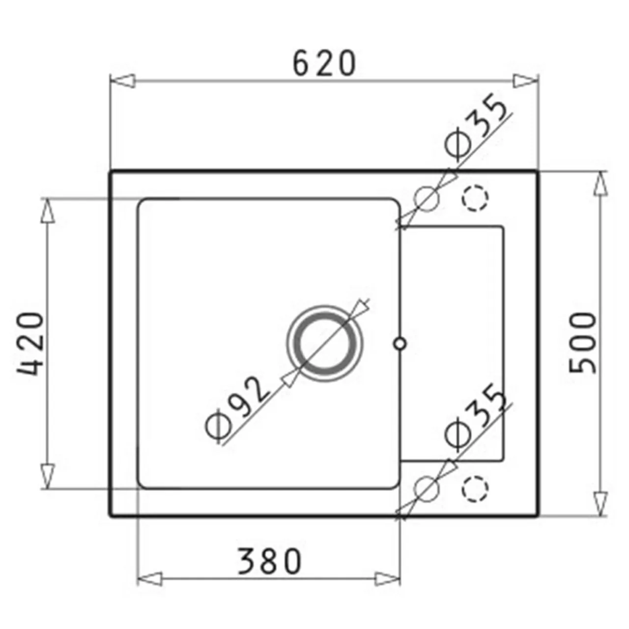 Zlewozmywak ZEFIR z krótkim ociekaczem został stworzony w technologii Pyragranit. Charakteryzuje się wysoką odpornością na uderzenia, zarysowania i oddziaływanie wysokich i niskich temperatur. Wymiary 62×50 cm sprawiają, że można go dopasować do szafki o szerokości 50 cm.