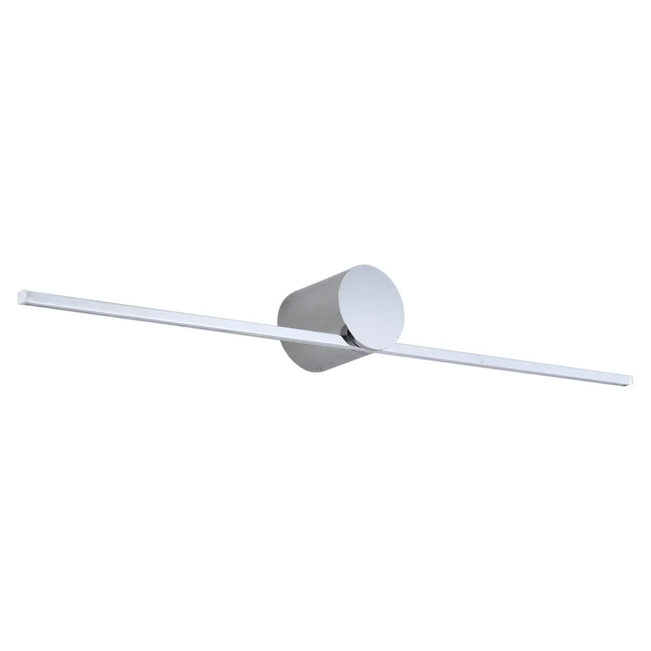 Chromowana kolorystyka kinkietu została wykończona w połysku, a jedynym jego przełamaniem są białe, matowe paski oświetlenia LED.