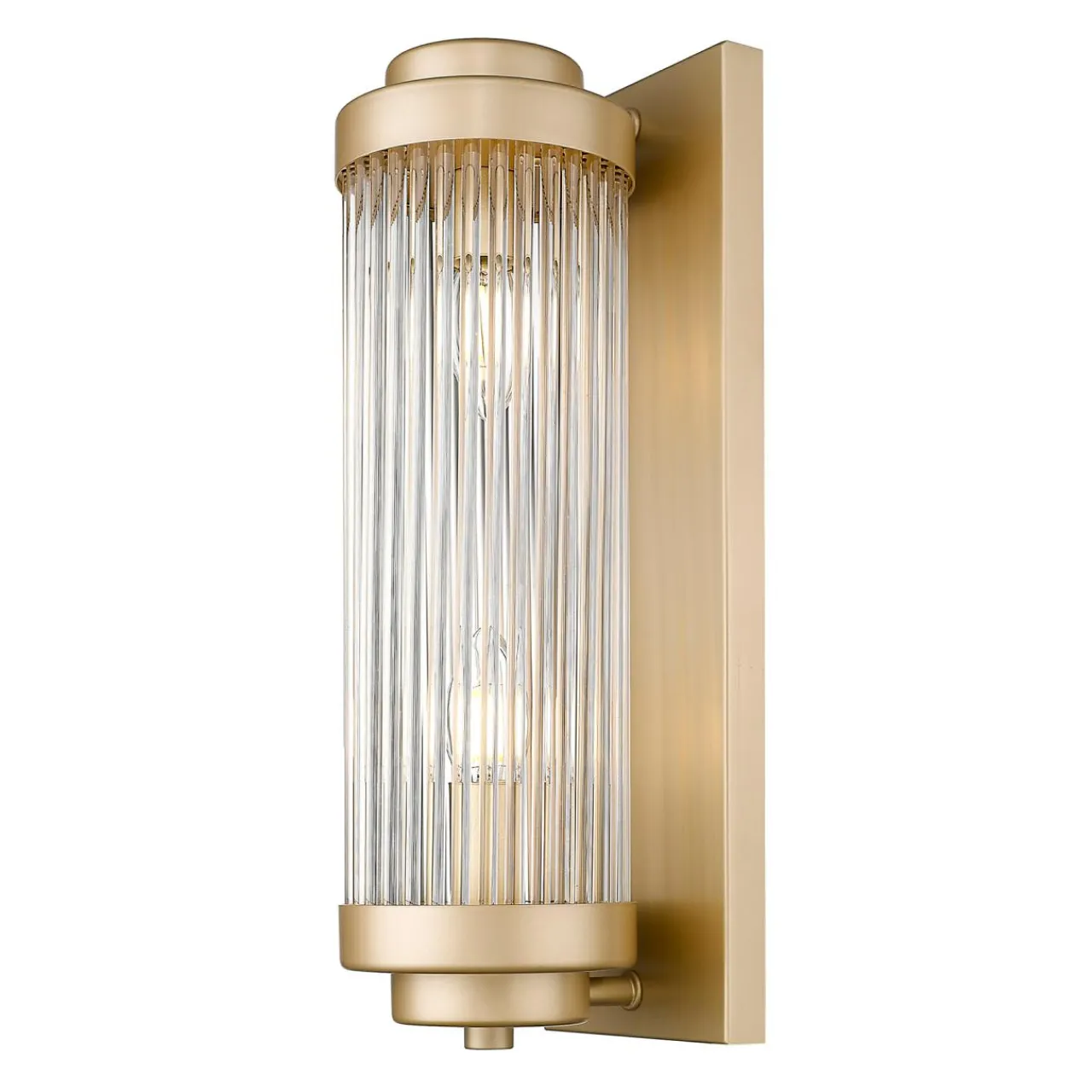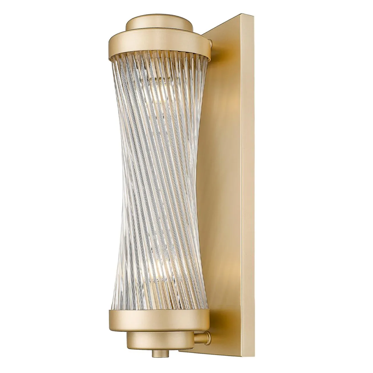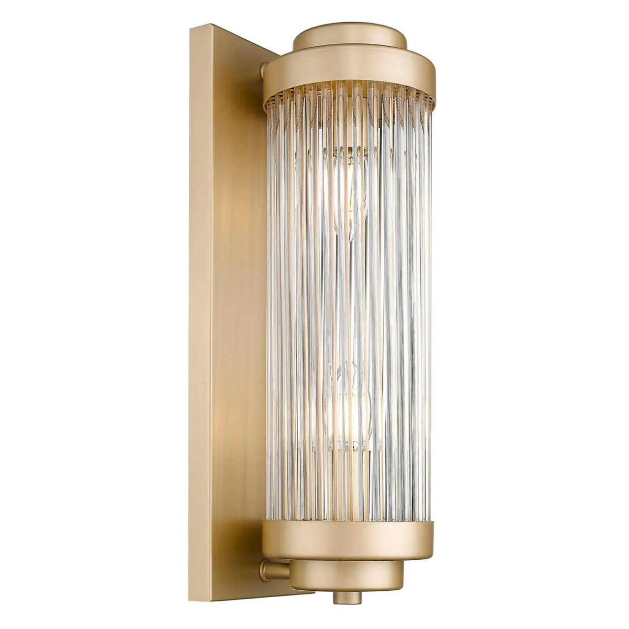 Szklany klosz ułożony ze szklanych elementów tworzy kształt walca. Całość wkomponowana jest w metalowe obramowanie i wzbogacona wykończeniem w matowym, złotym kolorze. Wspaniale łączy się z jasnymi kolorami i pięknie prezentuje zarówno we wnętrzach klasycznych, jak również tchnących nowoczesnością. Jest również wysmakowanym dodatkiem, który współgra ze stylem glamour oraz nowojorskim.