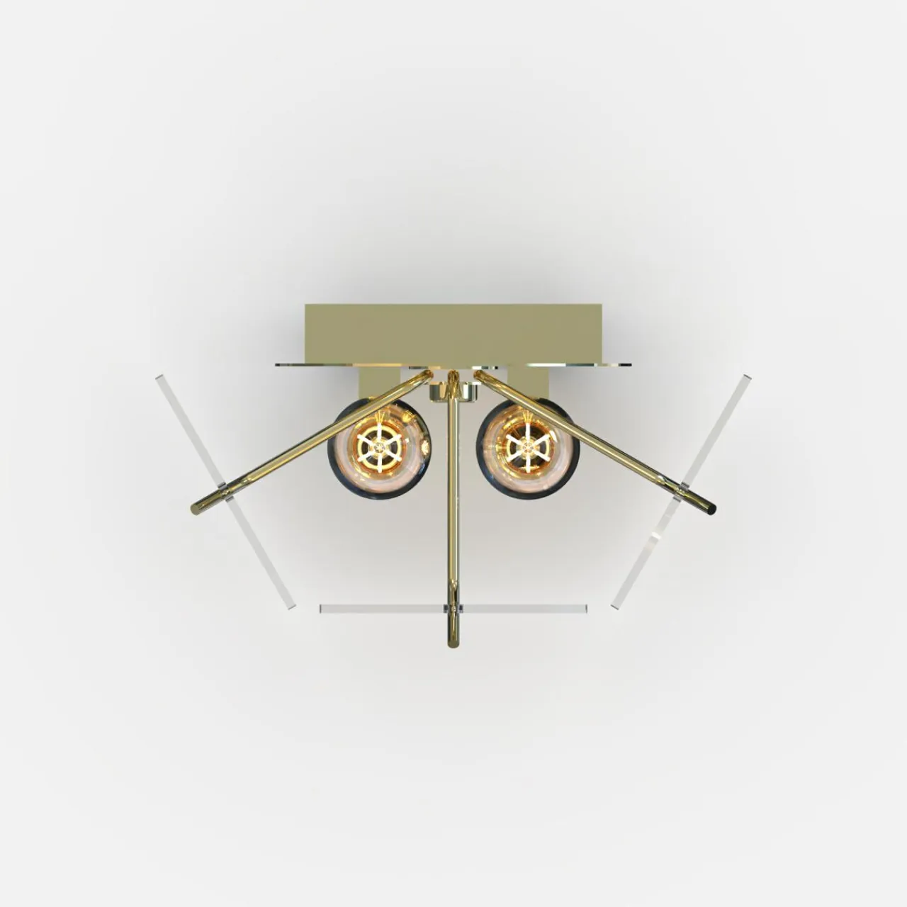 - Modny kształt lampy oparty jest ozdobach o regularnym kształcie, wykonanych z transparentnego szkła. Wykończenie lampy łączy złoty kolor oprawy ze szklanym kloszem.
