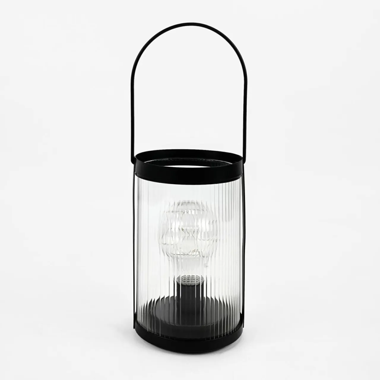 - Podstawa oraz zwieńczenie lampy są metalowe, natomiast środkowa część w formie walca wykonana została z transparentnego szkła.