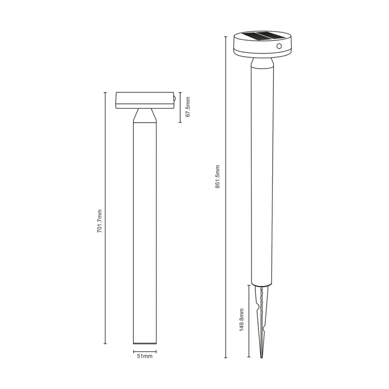 Zachwyca nowoczesnym, minimalistycznym designem. Oprócz standardowej nóżki oraz głowicy z wbudowanym LED-em posiada również szpic, który pozwala bez większych trudności wbić ją w ziemię.