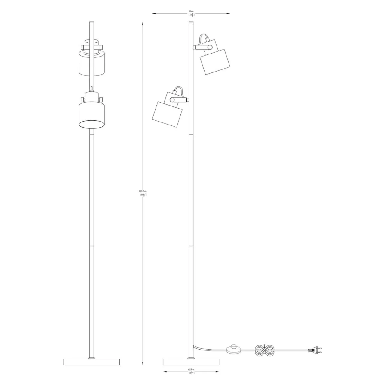 Lampa podłogowa DRACO posiada oprawę dla 2 żarówek typu E27 o mocy maksymalnej 40W.