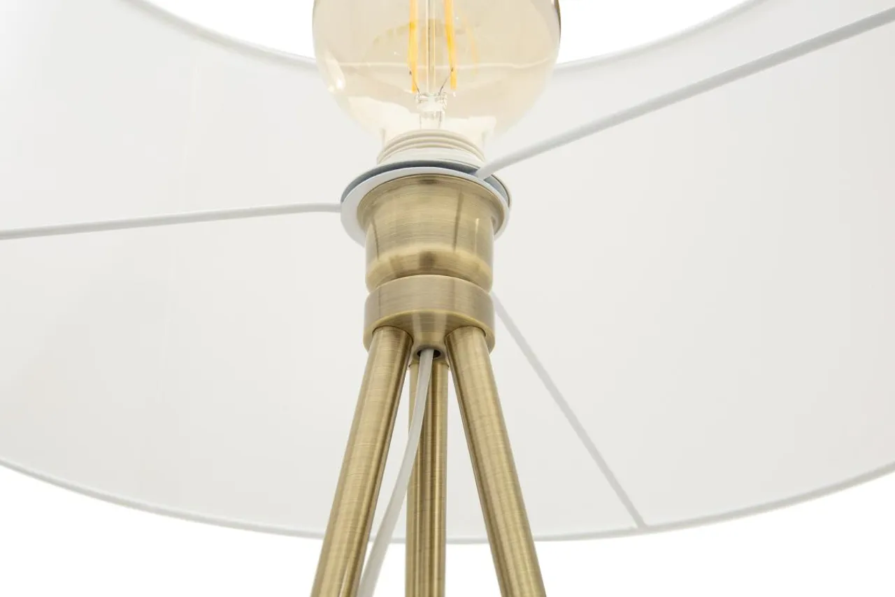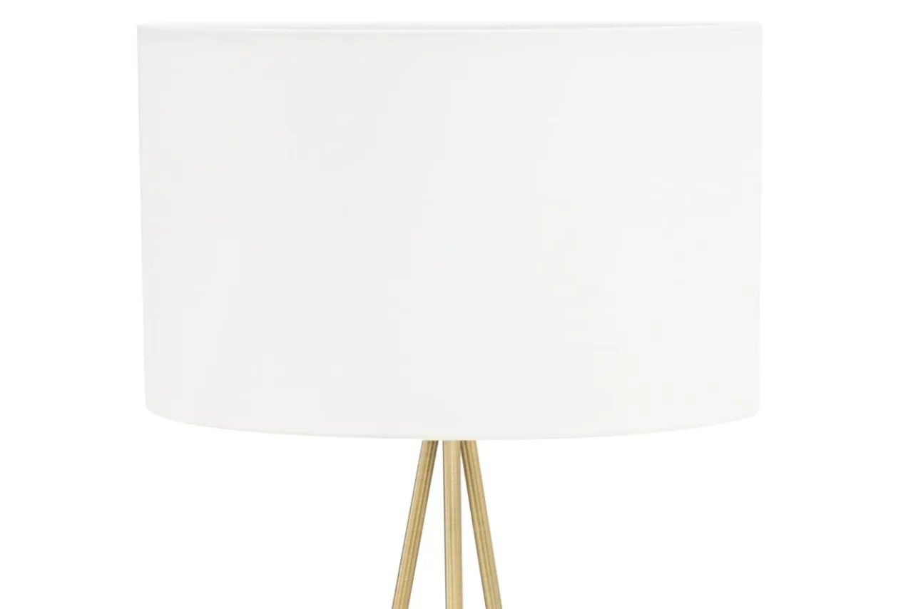 Złote wykończenie dodaje przyjemnego, ciepłego klimatu i łączy się wizualnie z abażurem w białym kolorze.