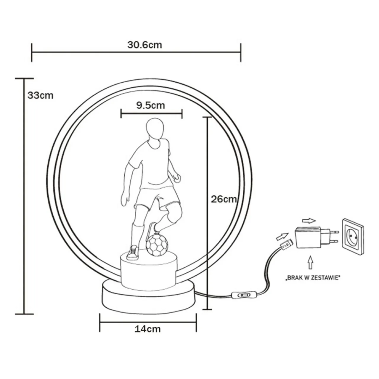 - Wbudowane oświetlenie LED sprawia, że po podłączeniu do źródła zasilania PIŁKARZ zmienia się z dekoracji lampkę nocną.