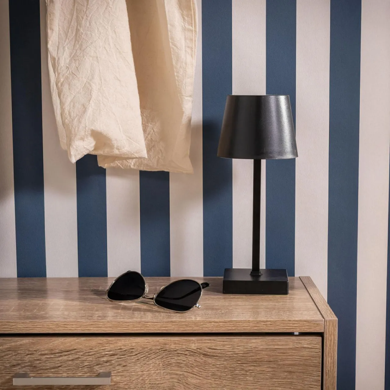 - Wbudowany moduł LED mieści się w kloszu imitującym abażur. Dotykowy włącznik znajduje się na jego wierzchołku.