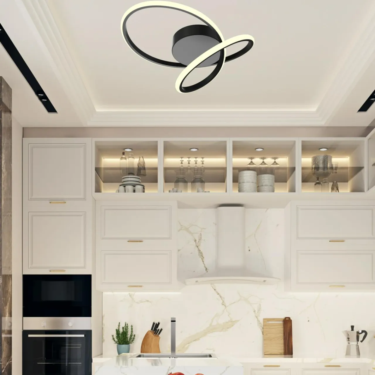 Chociaż wszystkie są lampami sufitowymi o czarnym, matowym kolorze, to różnią się kształtem elementu dekoracyjnego.