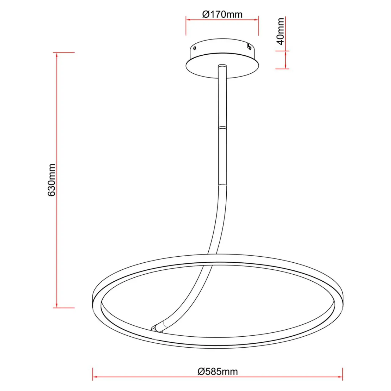 Pasek biegnie wewnątrz metalowego pierścienia, rozjaśniając od środka przestrzeń. Lampa emituje strumień świetlny o wartości 3540 lumenów.