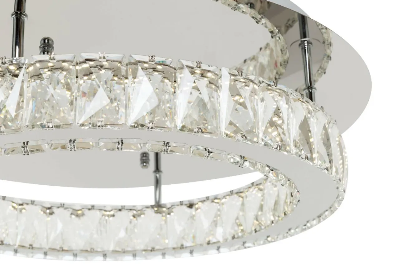 Srebrna kolorystyka podstawy oraz elementów ozdobnych lampy wzbogacona chromowanym wykończeniem urozmaica wizualnie wnętrze pomieszczenia, czyniąc jest jaśniejszym i większym.
