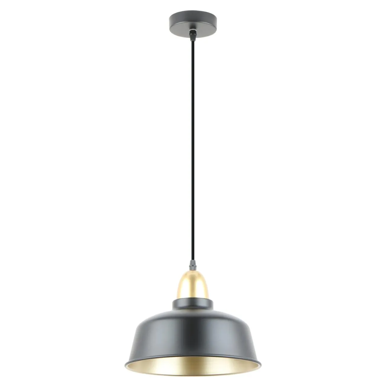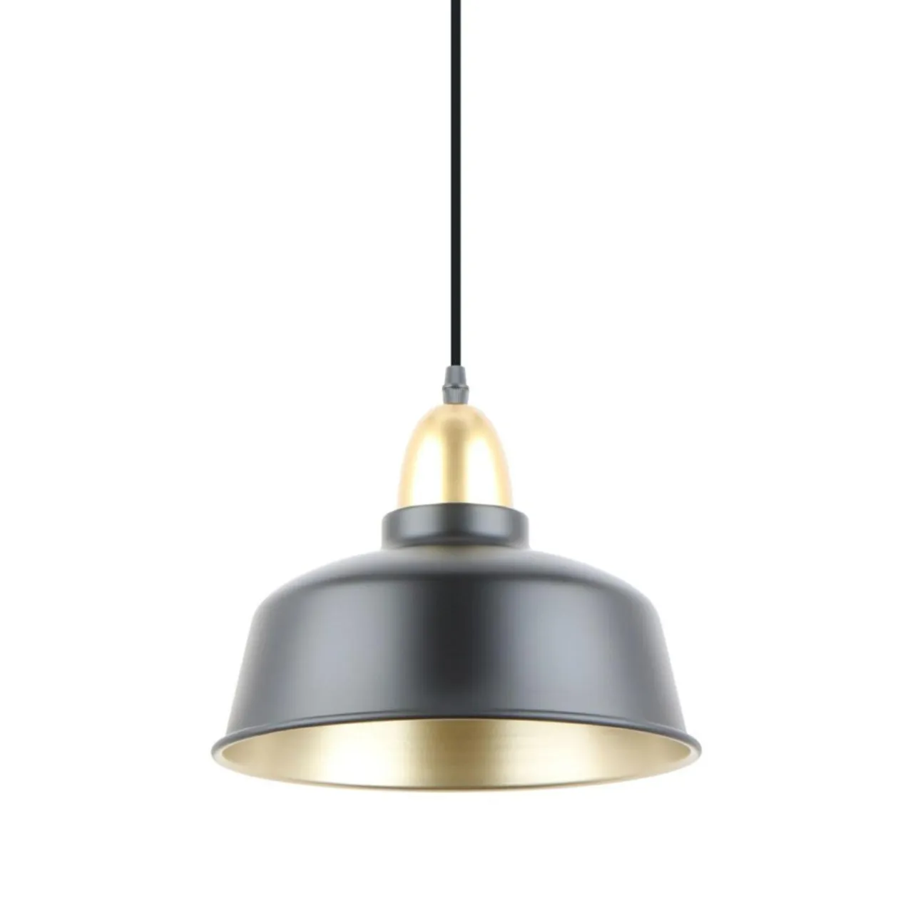 Połyskujące złote wykończenie zestawione z czarnym, matowym kolorem metalowego klosza to sprawdzone połączenie, które stanowi ukłon w stronę loftowego stylu. Jest również ciekawym designerskim zabiegiem, który sprawia, że lampa wpasuje się w nowoczesne trendy wystroju wnętrza.