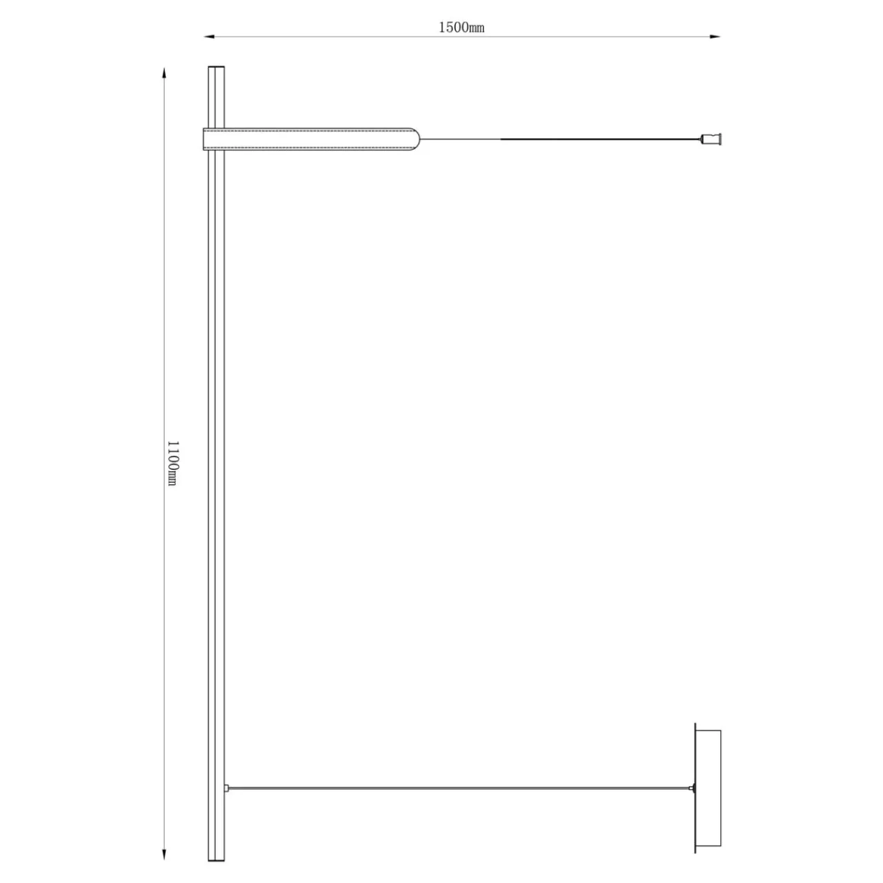 - Ma szerokość 110 cm, składa się z pojedynczej metalowej listwy w czarnym kolorze z dodatkowym elementem ozdobnym w dekorze jasnego drewna.