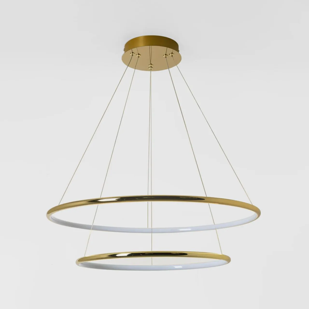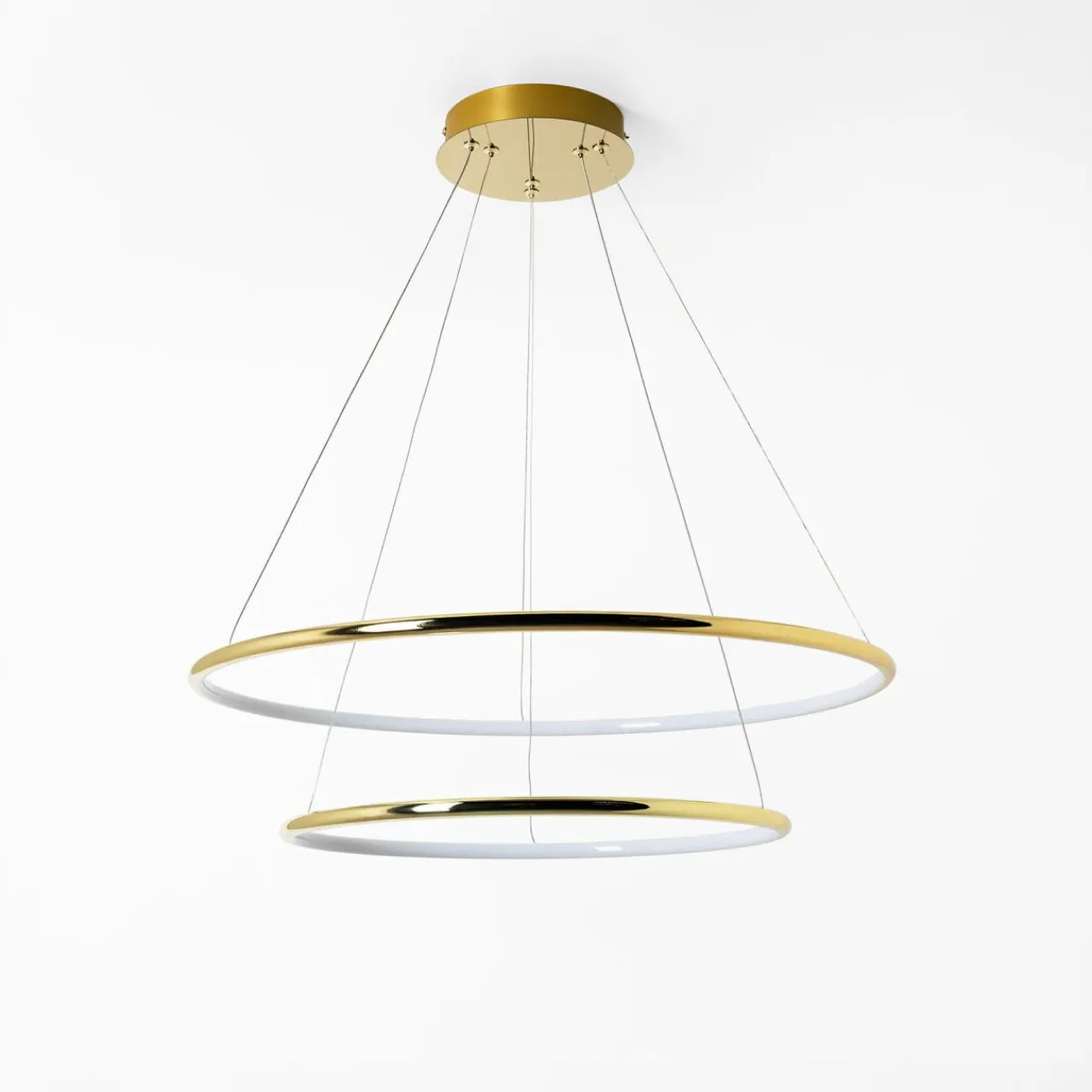 - Ten model posiada 2 pierścienie w złotym kolorze, co stanowi idealne wykończenie, jeśli projektujesz wnętrze w nowoczesnej estetyce z pierwiastkiem glamour.