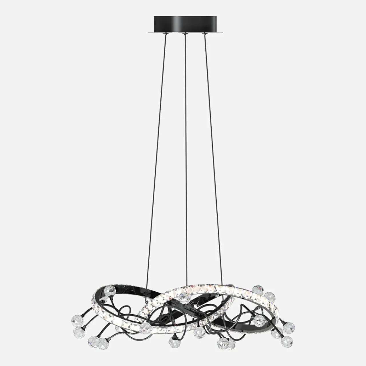 - Czarne, błyszczące wykończenie lampy MAIA zostało podkreślone akrylowymi kryształkami oraz dopasowanymi do kształtu lampy paskami LED.
