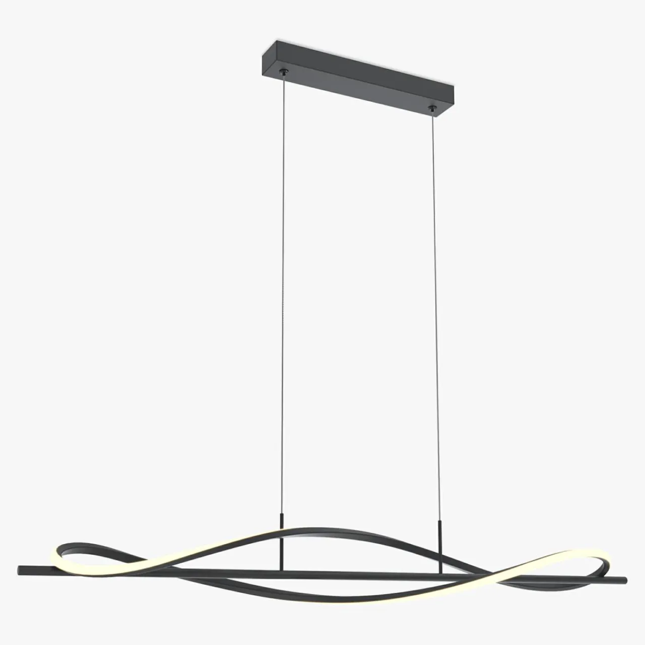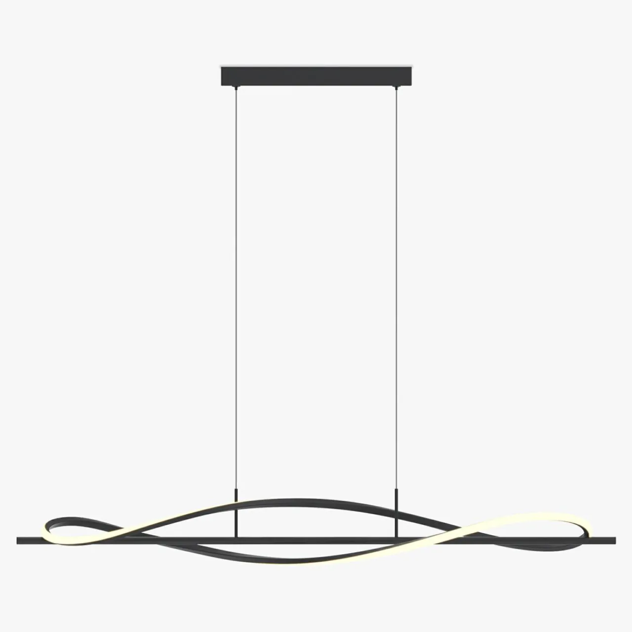 Czarna matowa oprawa doskonale podkreśli oszczędny design wnętrza, a podświetlony element ozdobny w postaci wstęgi idealnie wpasuje się w nowoczesną lub loftową estetykę.