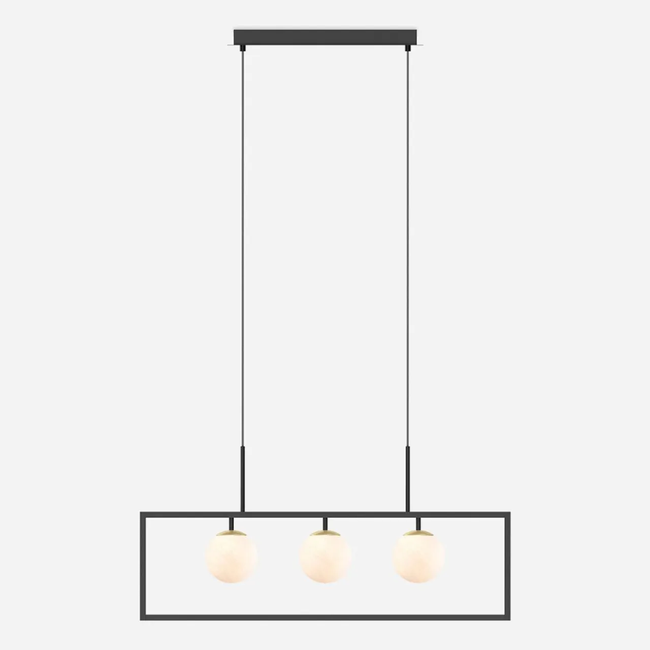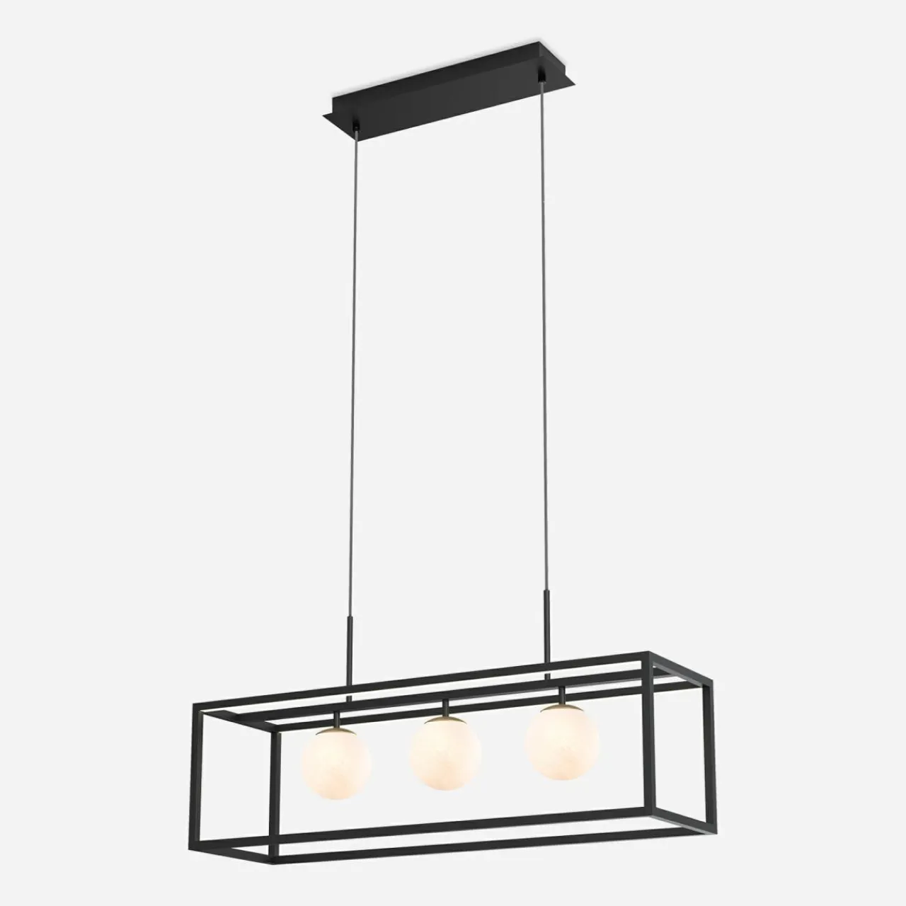 - Wiszącym modelem lampy PIRO ozdobisz salon lub jadalnię – czarna oprawa ładnie kontrastuje z mlecznobiałymi kloszami.