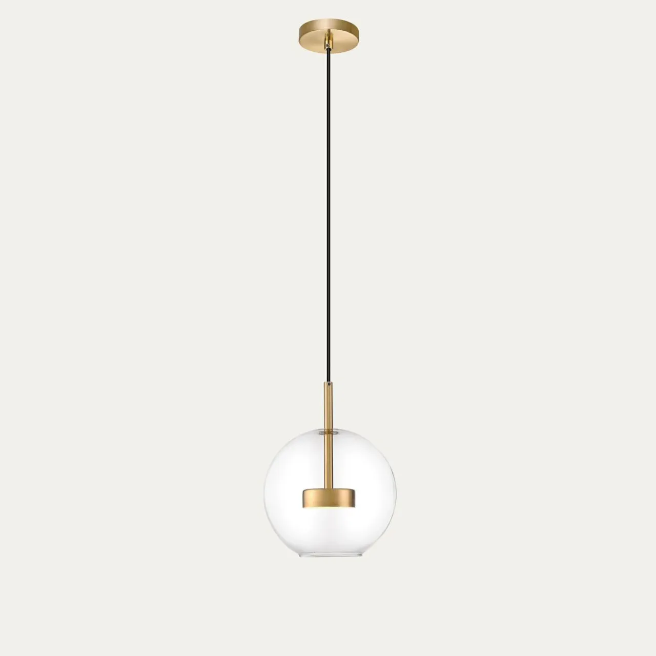 - Oprawa lampy posiada powierzchnię o ciepłym, złotym wykończeniu – idealną dla wnętrz ozdobionych szkłem, bielą i drewnem.
