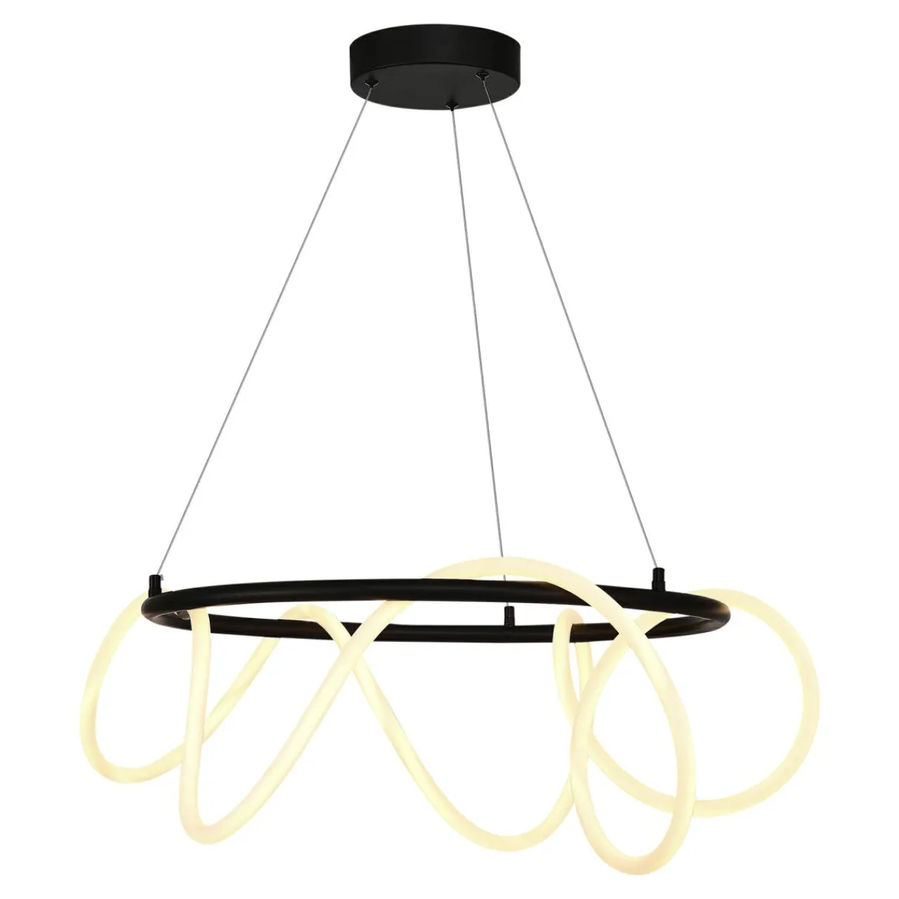 - Podwieszony okrąg z wijącą się dookoła LED-ową wstęgą to ciekawy pomysł designerski, który uświetni wygląd Twojego salonu.
