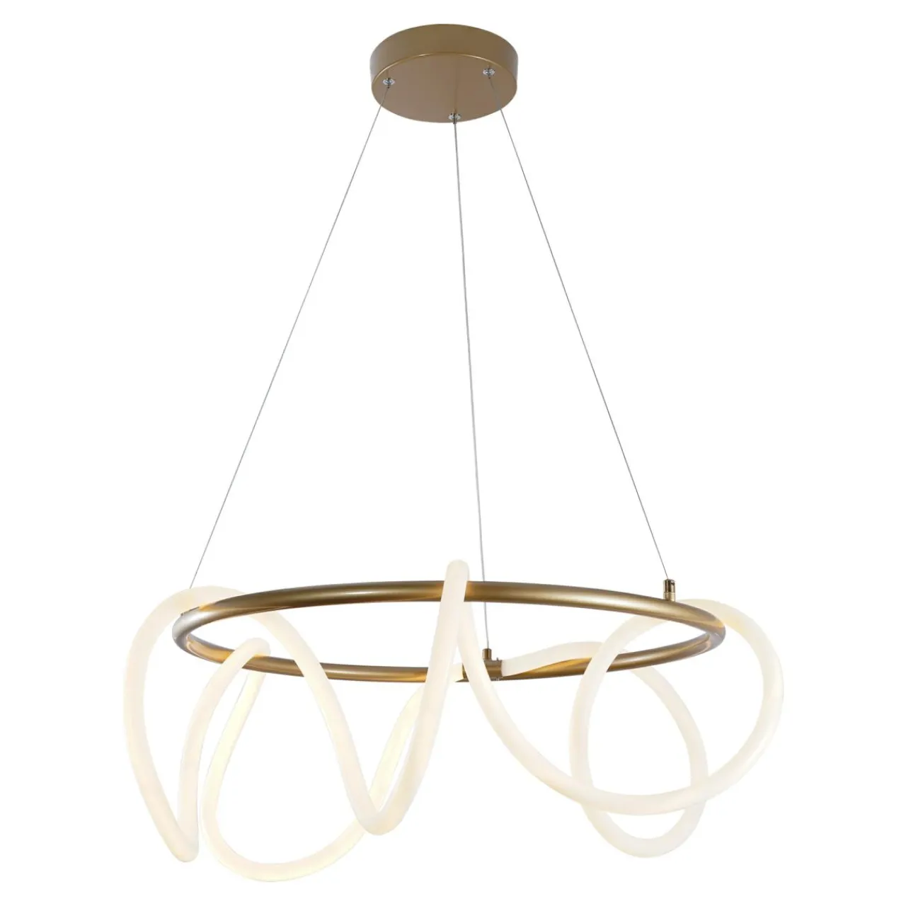 - Podwieszony okrąg z wijącą się dookoła LED-ową wstęgą to ciekawy pomysł designerski, który uświetni wygląd Twojego salonu.
