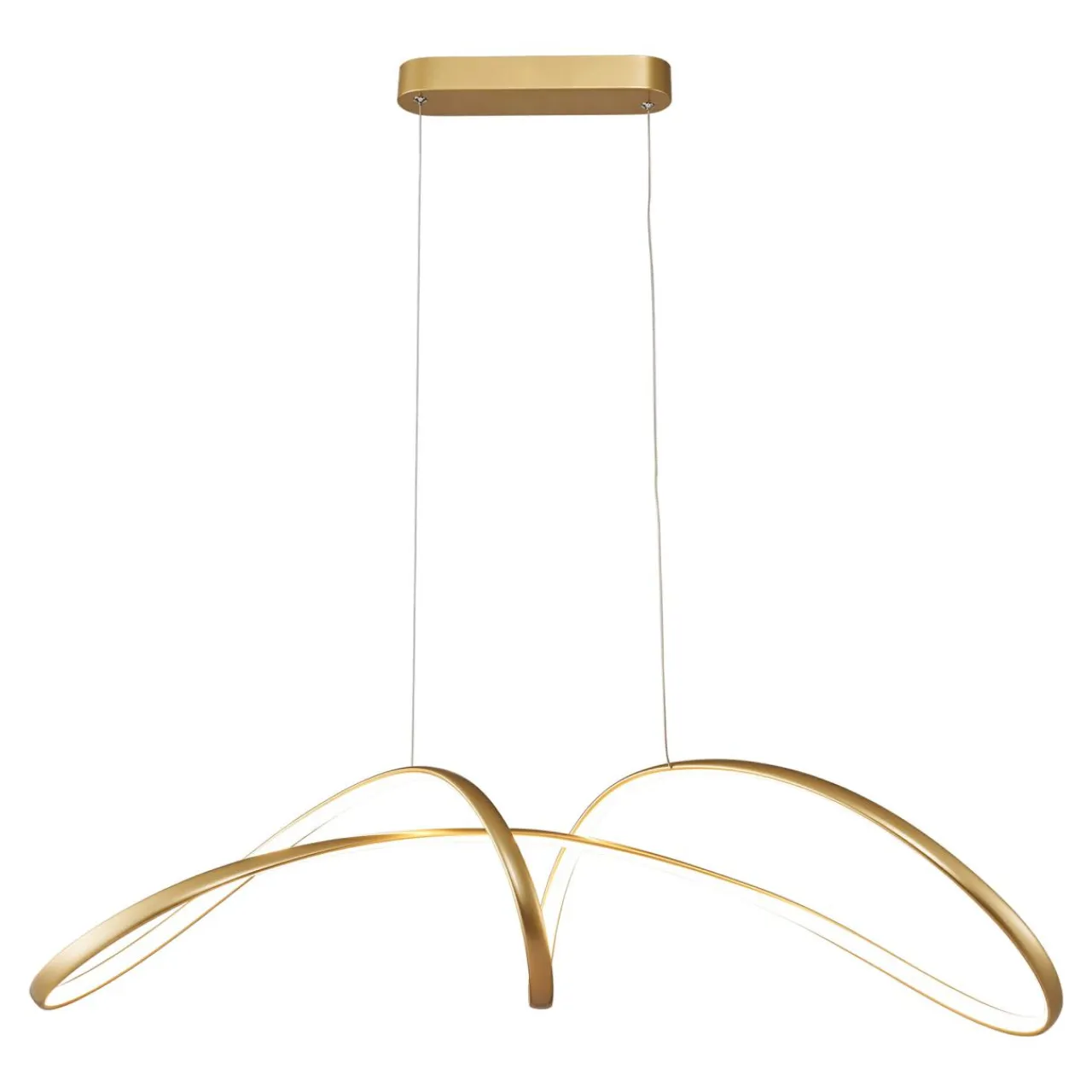 - Odważny kształt lampy przywodzi na myśl wijącą się wstęgę, która upiększy salon minimalistycznym wzorem.