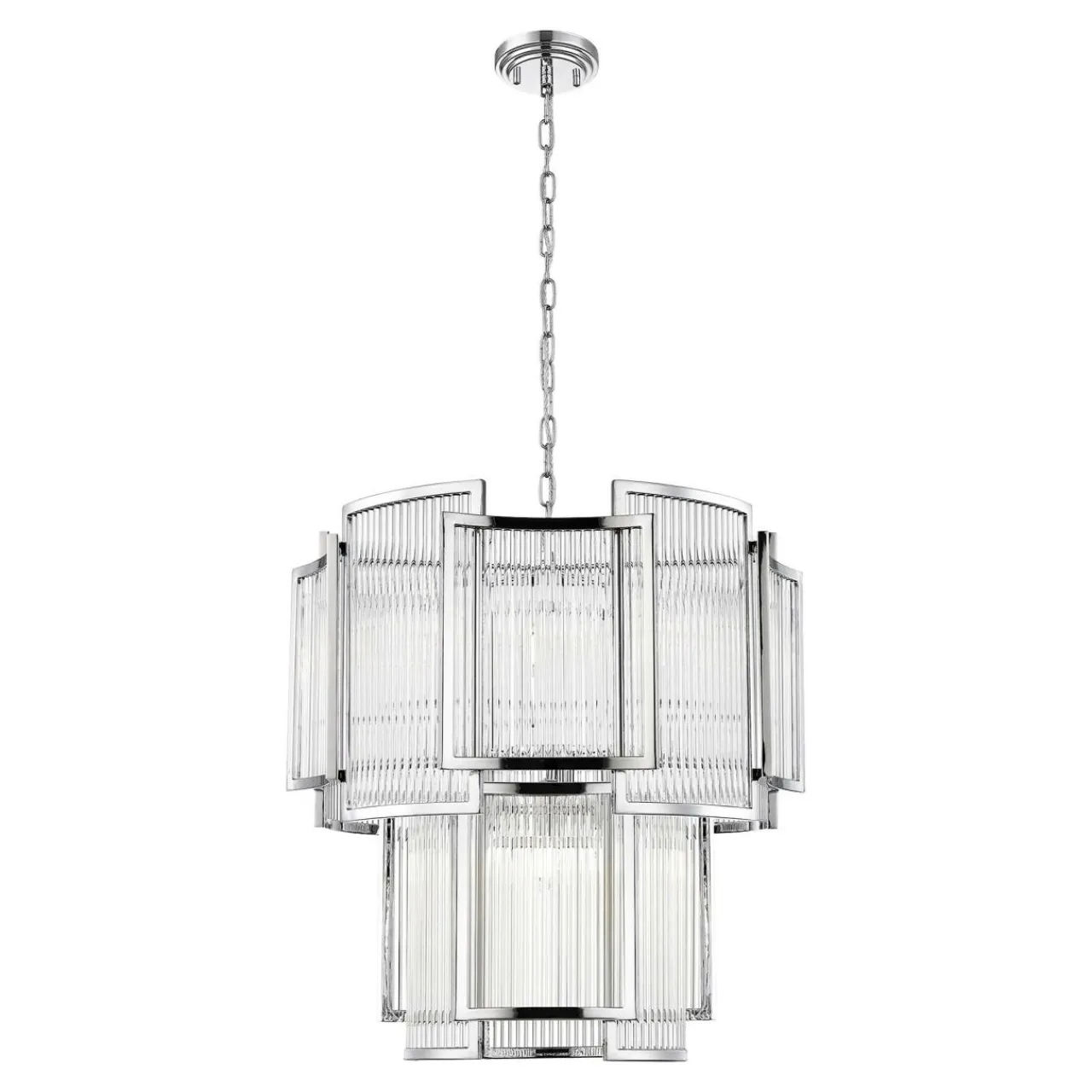 Jej szklany klosz wkomponowany w metalową ramę i wzbogacony chromowanym wykończeniem podkreśla nowoczesną stylistykę wnętrza oraz wspaniale komponuje się z jasnymi kolorami. Jest wysmakowanym dodatkiem, który wzbogaca pomieszczenie o odrobinę szyku oraz elegancji.