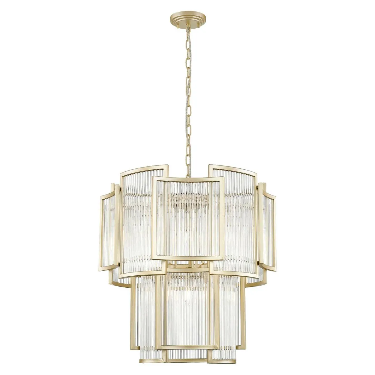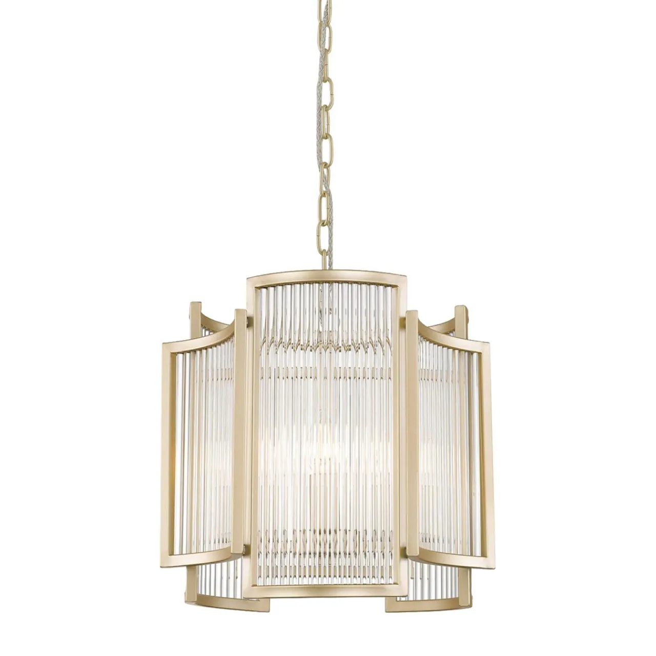 Jej szklany klosz wkomponowany w metalową ramę i wzbogacony matowym, złotym wykończeniem podkreśla nowoczesną stylistykę wnętrza oraz wspaniale komponuje się z jasnymi kolorami. Jest wysmakowanym dodatkiem, który wzbogaca pomieszczenie o odrobinę szyku oraz elegancji.