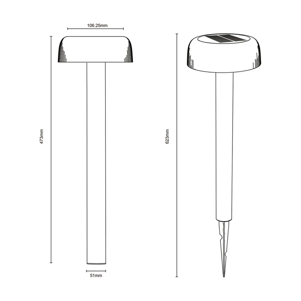 Oprócz standardowej nóżki oraz głowicy z wbudowanym LED-em posiada również szpic, który pozwala bez większych trudności wbić ją w ziemię.